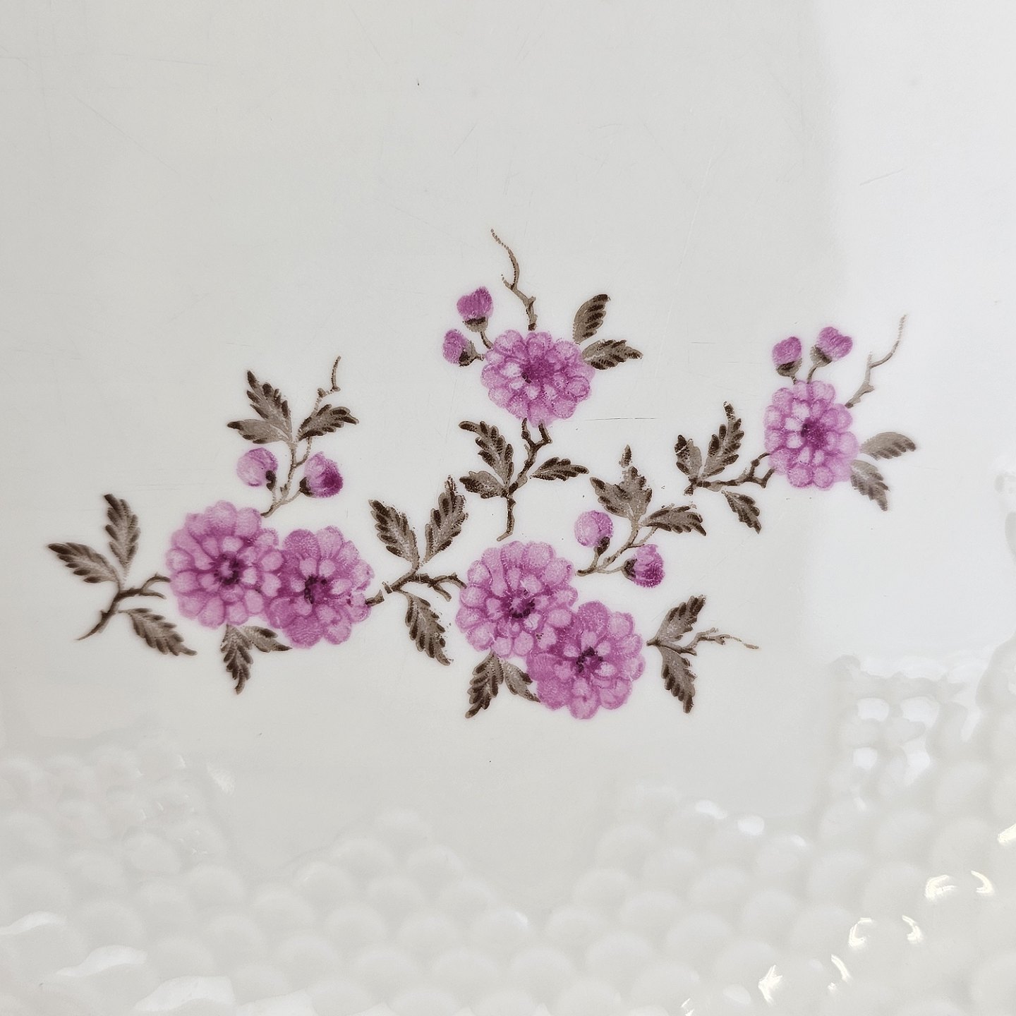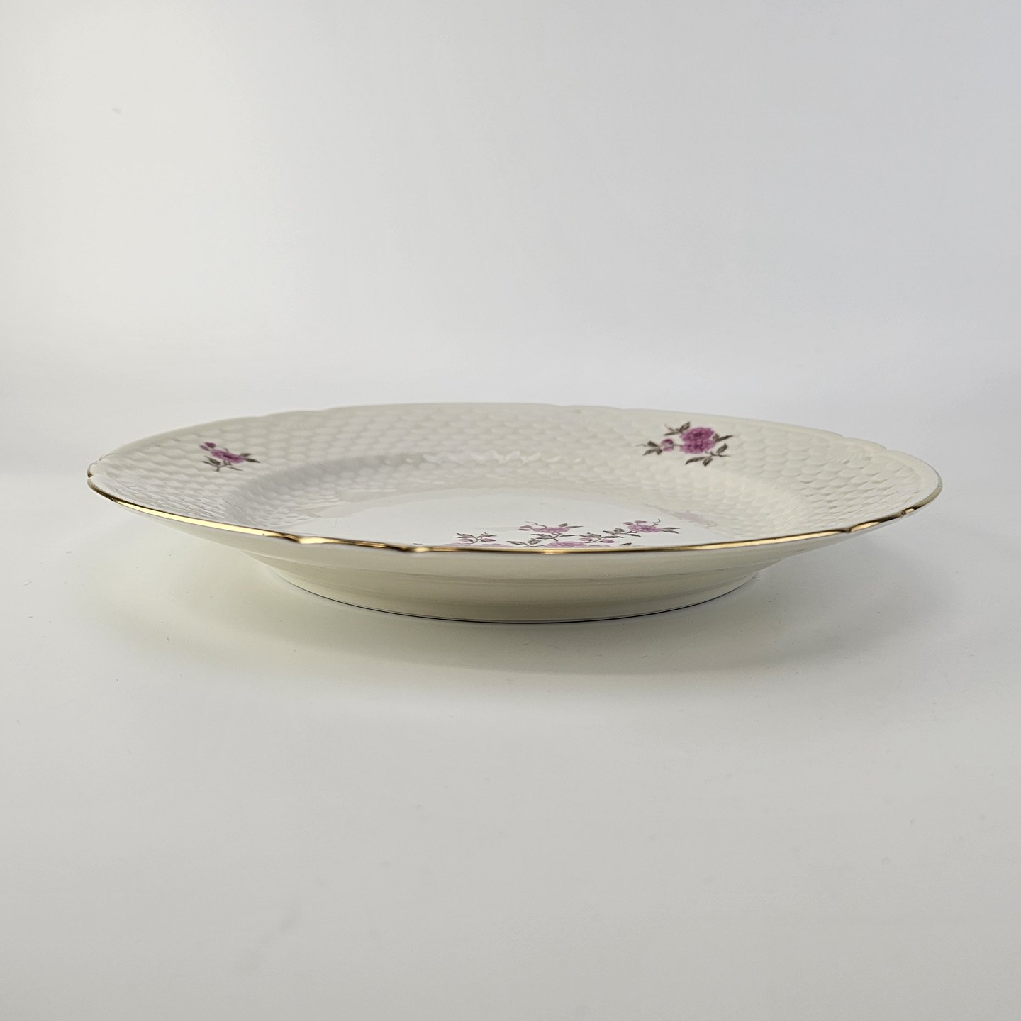 Volmer er porcelæn i skelform med guldkant og motiv af lyserøde blomster