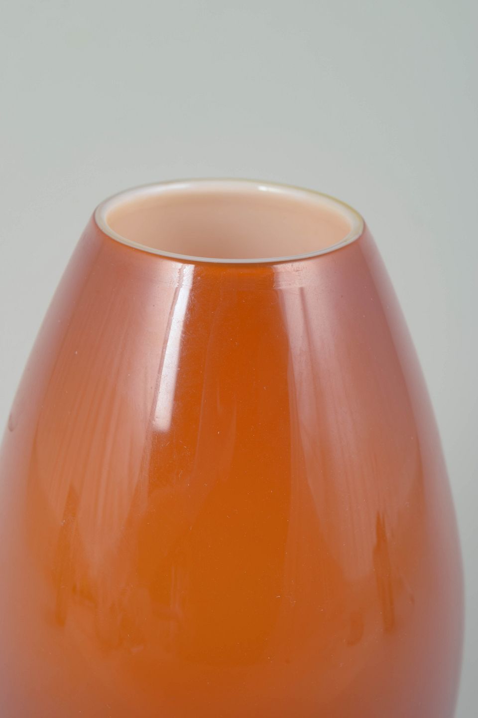 Mouth-blown vase in a warm orange tone from Peter Svarrer’s well-known “Cocoon” series for Holmegaard. The soft, oval form and gentle colour gradation give the piece a modern, sculptural presence.