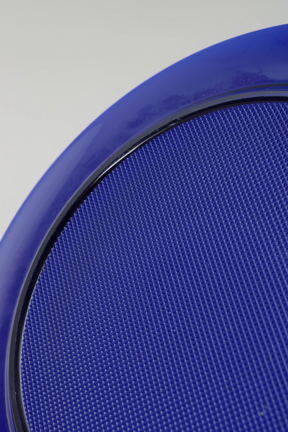 Set of five deep cobalt-blue charger plates in thick, transparent art glass. The clear, saturated blue tone and the simple round shape create an elegant and characteristic expression typical of Scandinavian glass design from the 1980s.