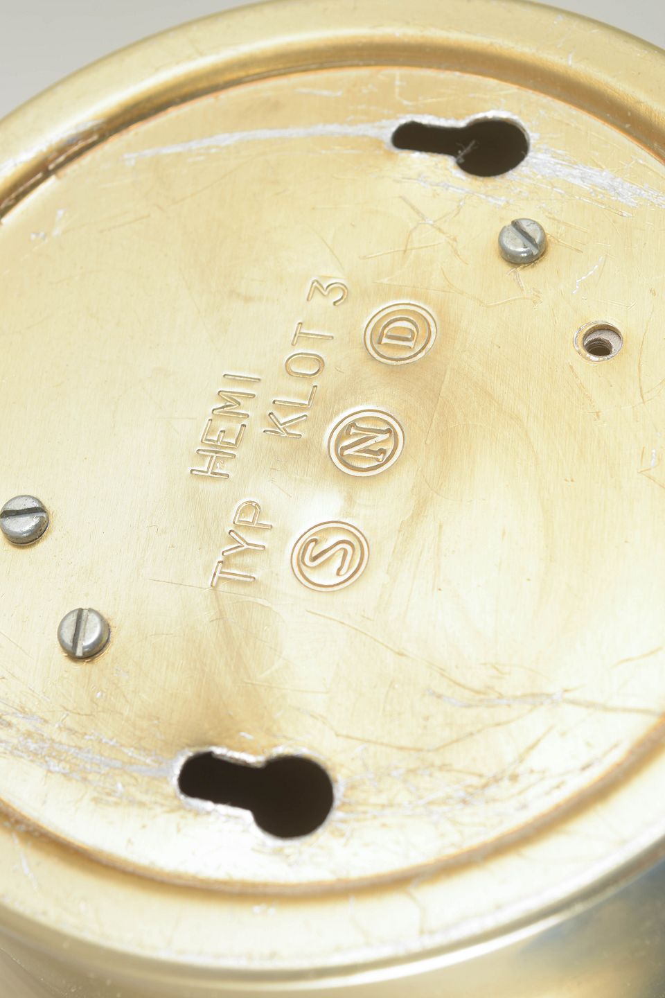 Sculptural table lamp in pressed aluminium, produced in Sweden in 1975. The hemispherical “hemi-klot” base creates a bold, modern presence, with the brushed metal surface reflecting the industrial aesthetic of the 1970s.