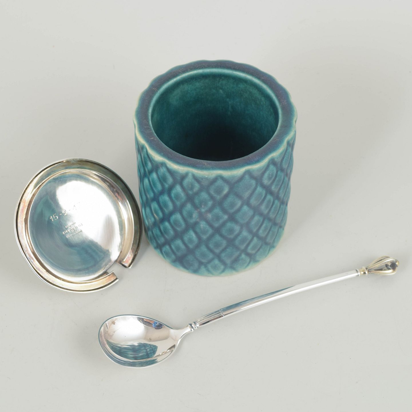 jam jar with 830 silver lid and 830 silver spoon, mid-20th century.