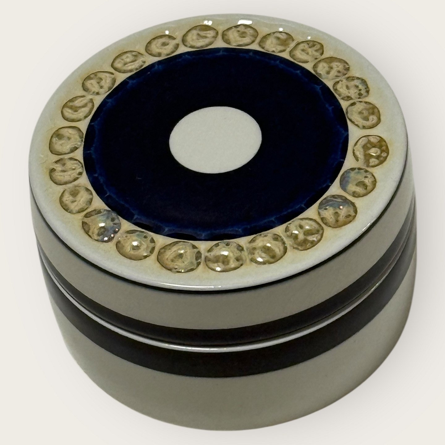 Aluminia, Bonbonnierer / small jar with lid, # 573/3165, Diameter 8.5cm, height 5cm, *Slight cracks under the glaze (see photo) otherwise good condition*