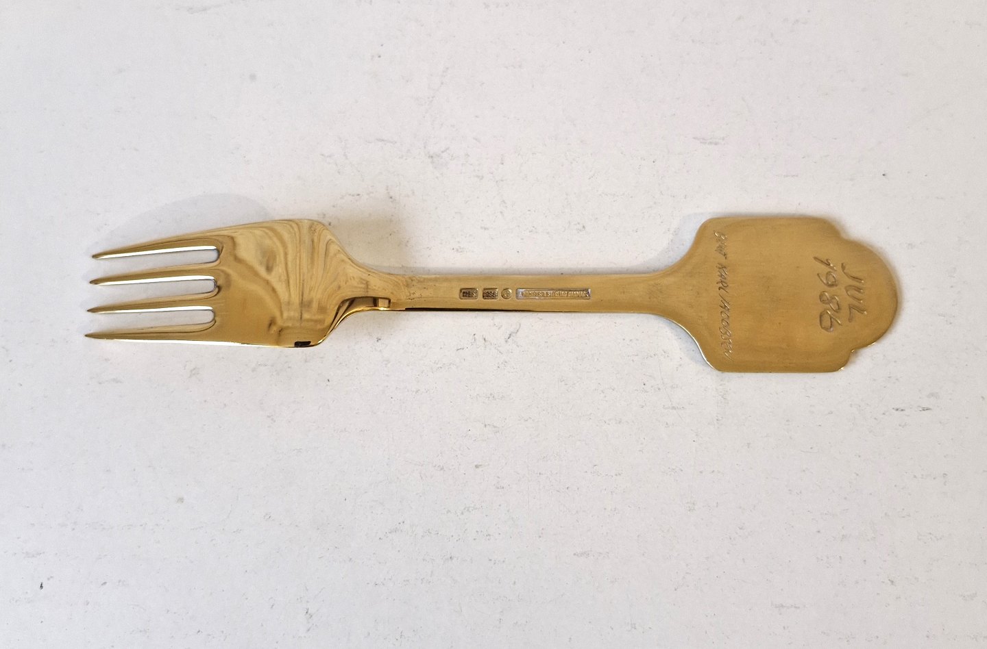 A.Michelsen Christmas fork in gold-plated sterling silver and enamel from 1986