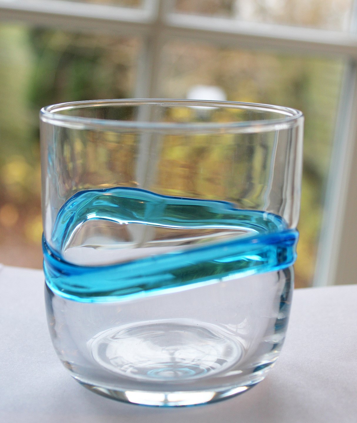 Text available in Danish: Drinksglas, Blå Time, Holmegaard