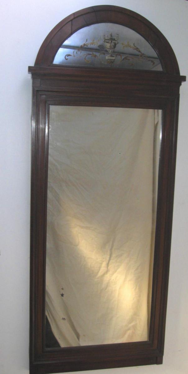 Mirror, mahogany plated with beading, Louis XVI, 1770 - 85. H.:125 cm. B: 54 cm. Probably from Holstein. Provenance: Manor House in North Jutland.