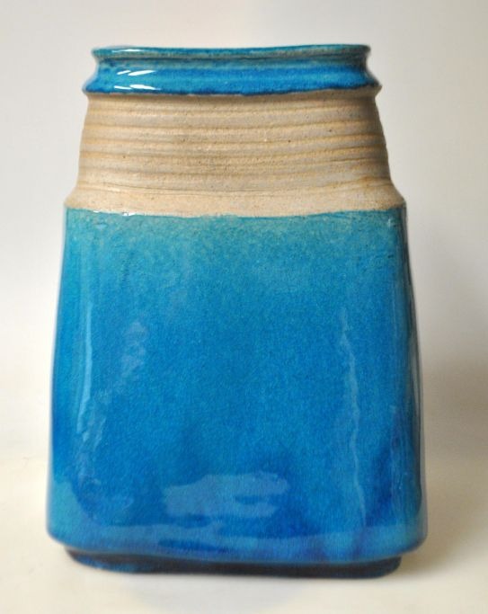Kähler, Nils Joakim (1906 - 1979): Large vase. Made for HA Kähler, Næsteved. Turquoise glaze. With edge decoration. Signed. H: 23 cm. Dia.: 17 cm.