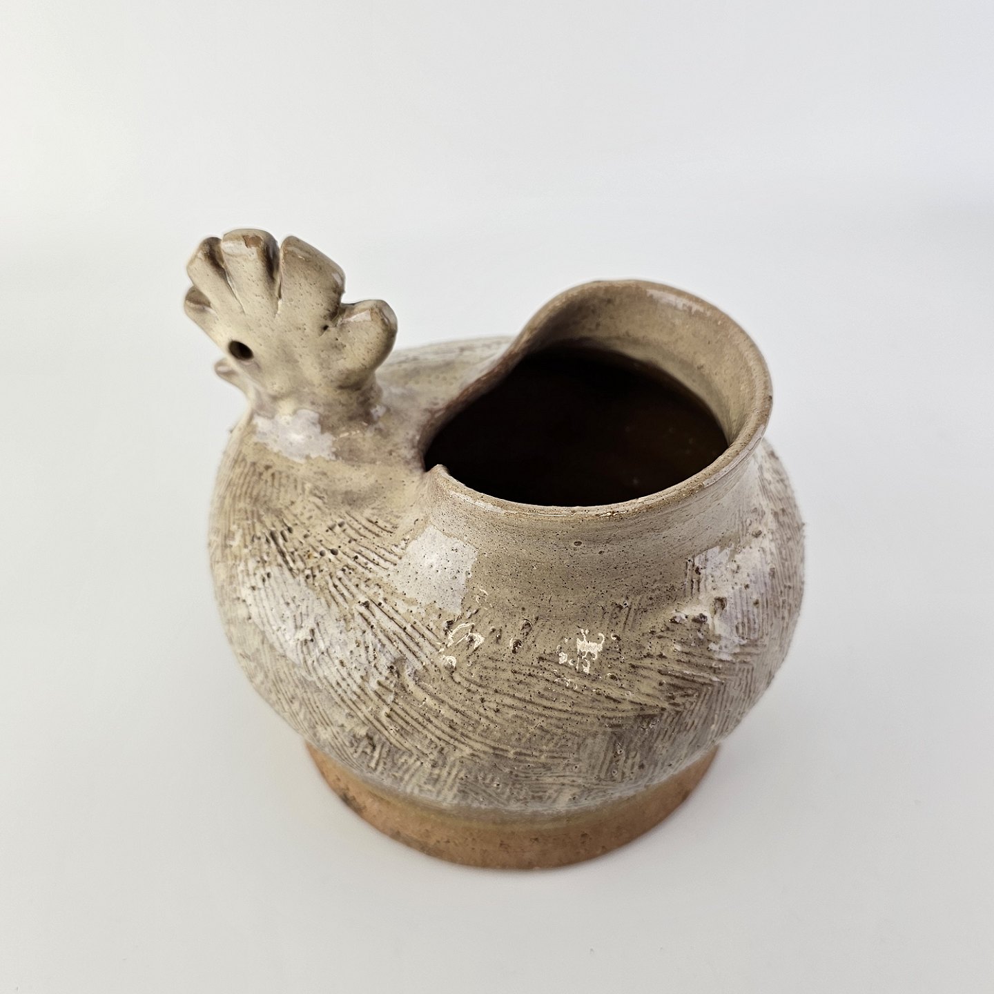 Krukke med form som en høne i brunlig glaseret keramik