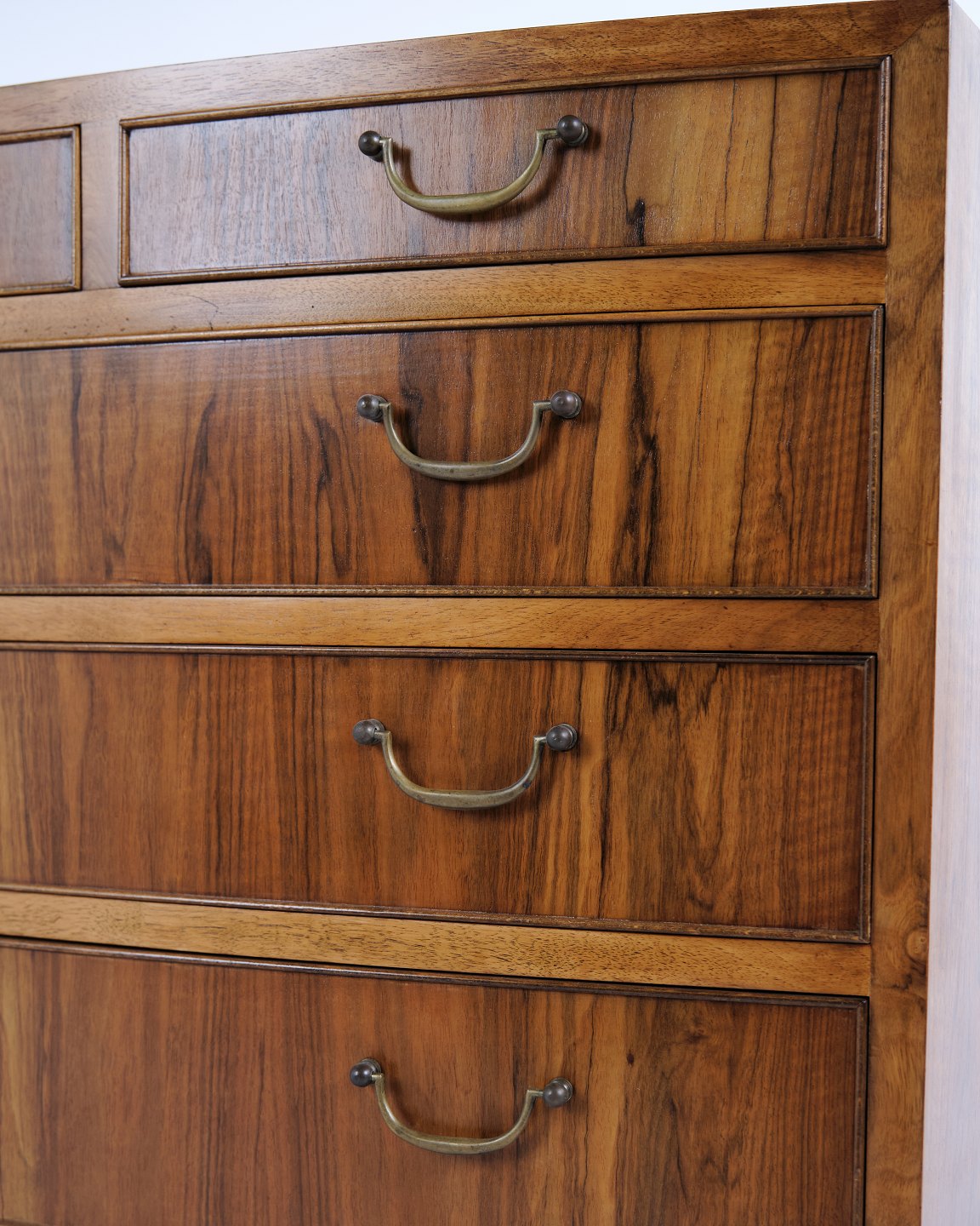Chest of drawers from the 1940s designed by Ole Wanscher. Made in walnut veneer with brass handles and characteristic details from the period. An early example of Wanscher’s refined craftsmanship and use of high-quality materials.
