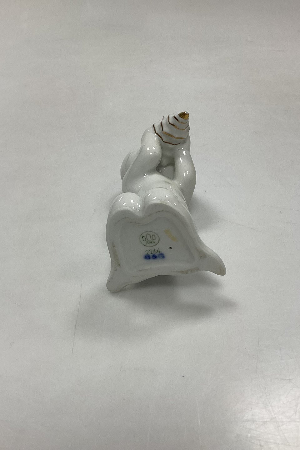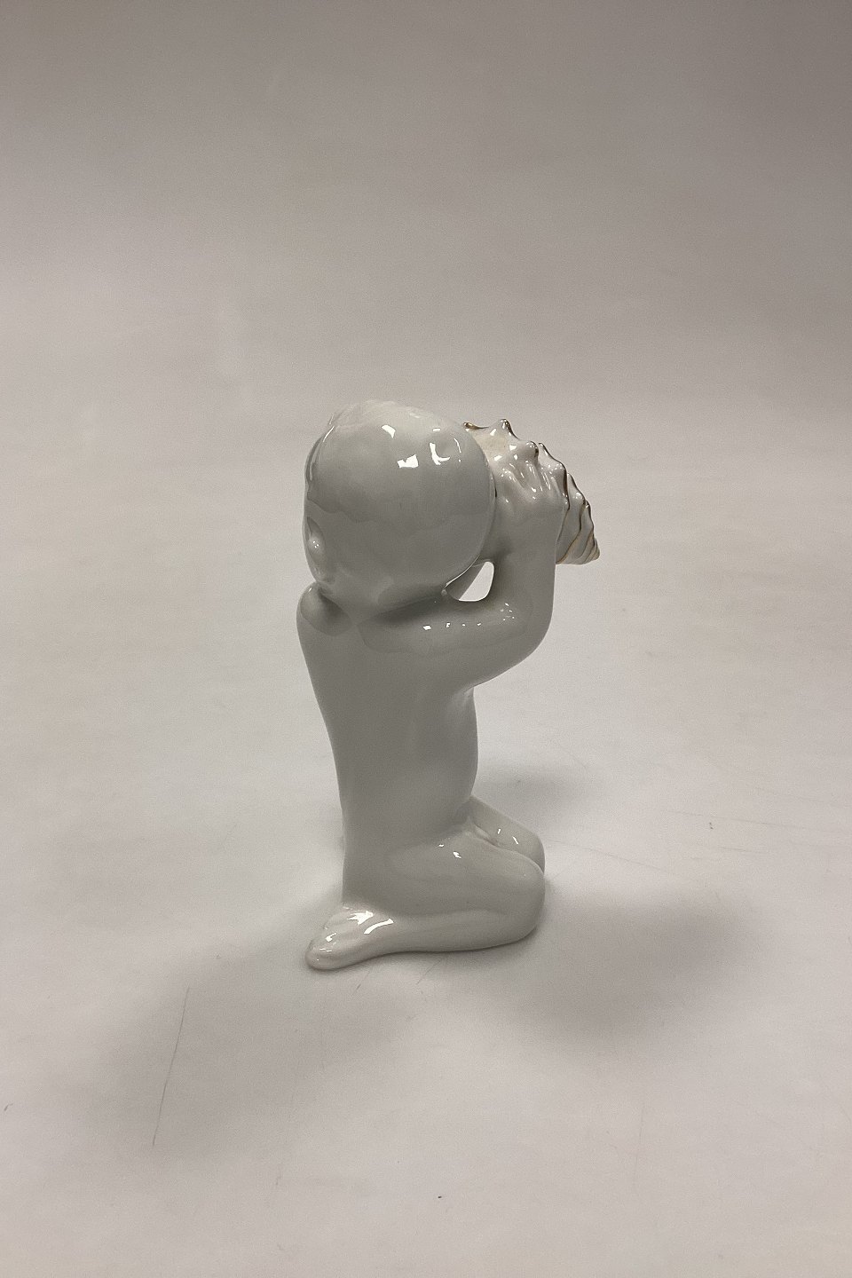 Bing and Grondahl Figurine - Sea Child with Conch No. 2264. Blanc de Chine porcelain with gold. Designed by Ebbe Sadolin/Svend Jespersen.