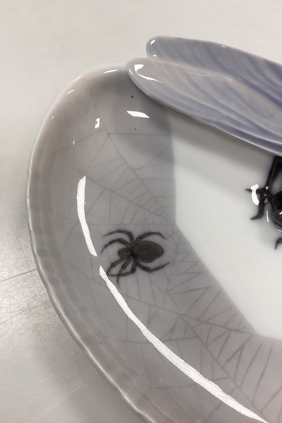 Royal Copenhagen Art Nouveau Bowl - Dragonfly and Spider No. 9/15. Small black spots in the glaze, see photo.