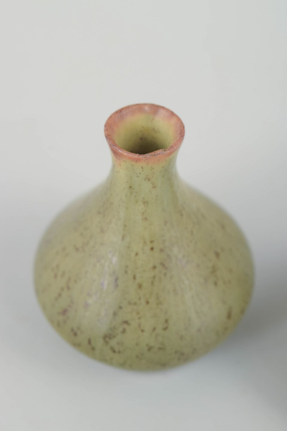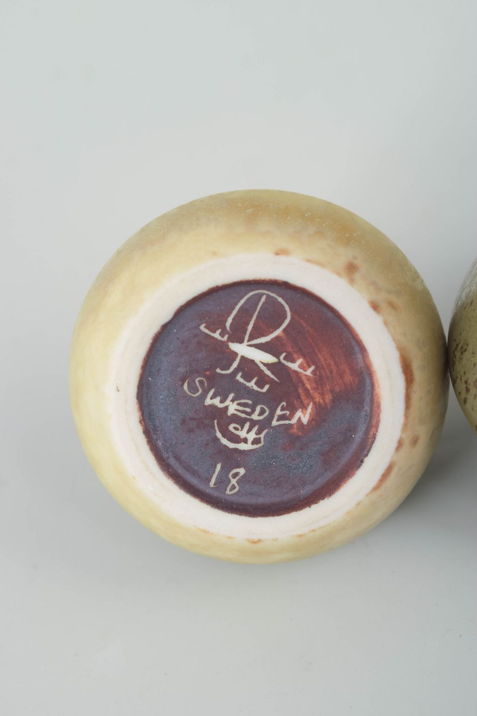 Carl-Harry Stålhane (1920–1990) was one of Rörstrand’s most significant designers and a key figure in Swedish modernist ceramics. His work combined refined forms with sophisticated glaze experimentation, often produced in small batches or as unique pieces, making his miniature vases highly collectible today.