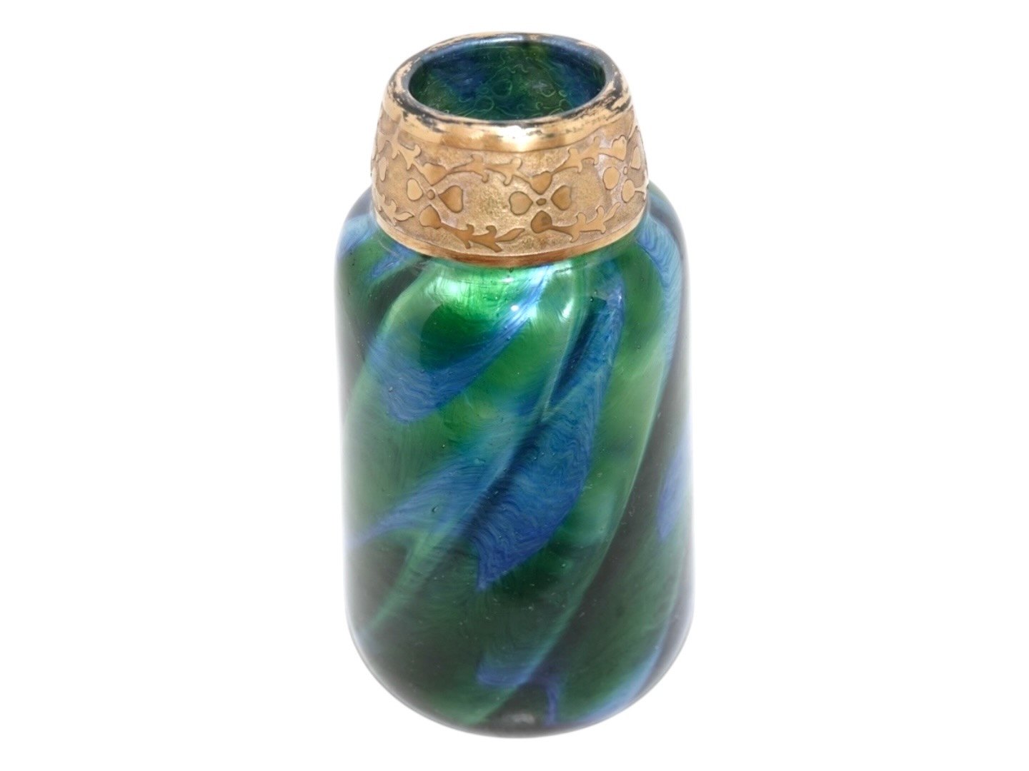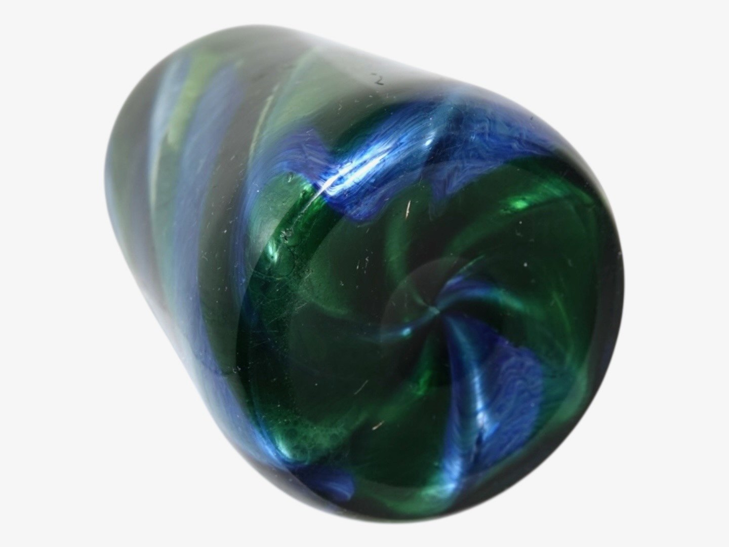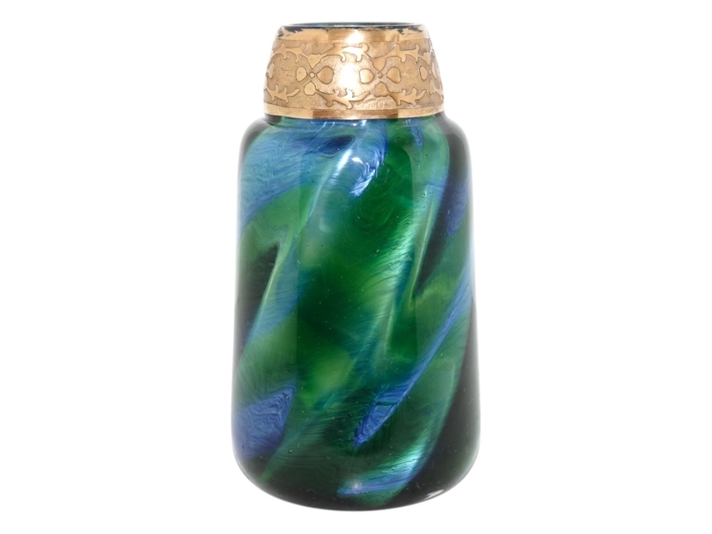 Bohemian glass vase with green and blue colors from around 1900 to 1920.