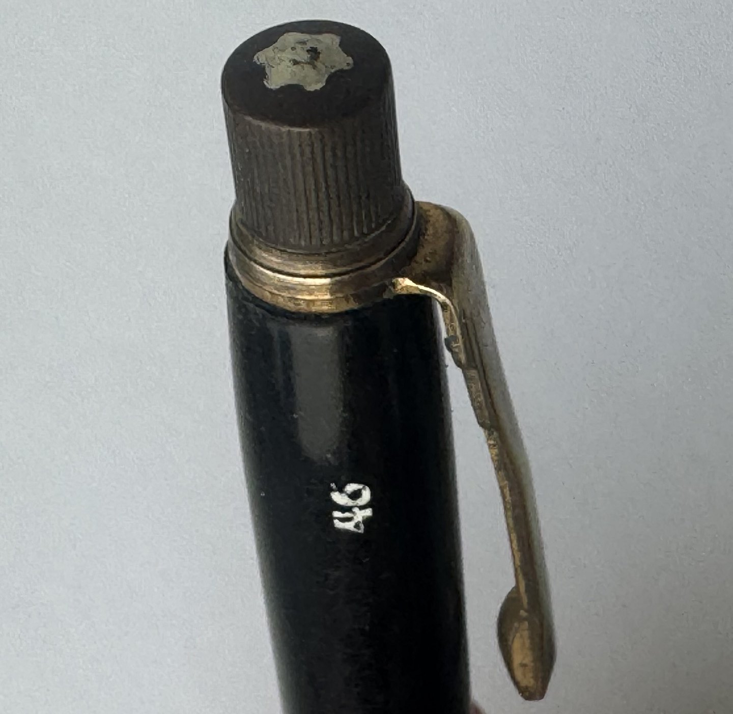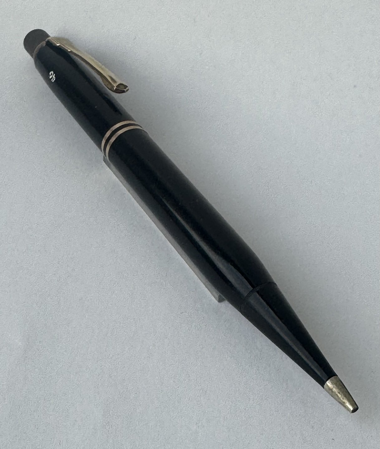 Black Montblanc no. 46 mechanical pencil. Made in Germany in the 1950s. In good condition. Ready to use. However, lead pencils must be purchased before it can write again.
