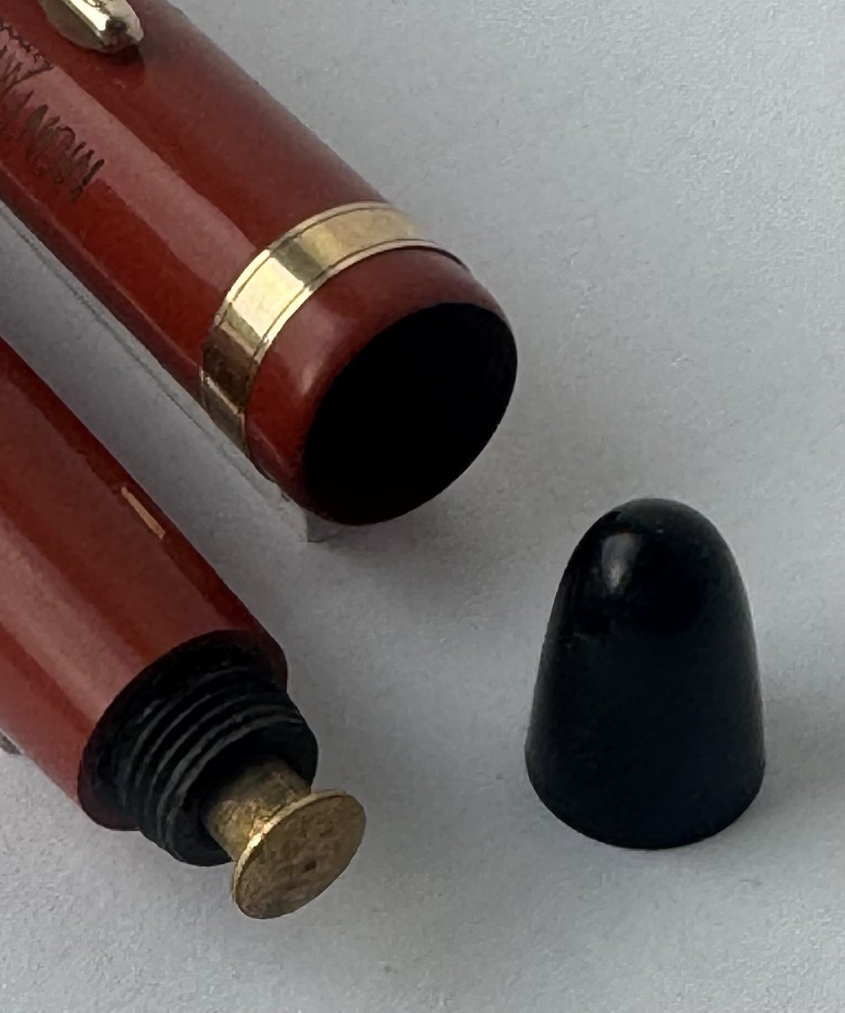 Coral red Montblanc no. 212 fountain pen. Appears in good condition with no damage or repairs. The cap is marked with MONTBLANC, the small black bottom button with the model number 212. A new rubber sack must be inserted before it can absorb ink and write again.