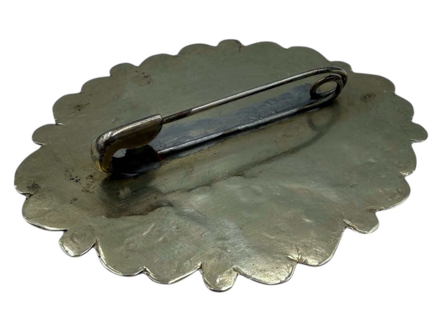 Large silver brooch with bird and five stones.