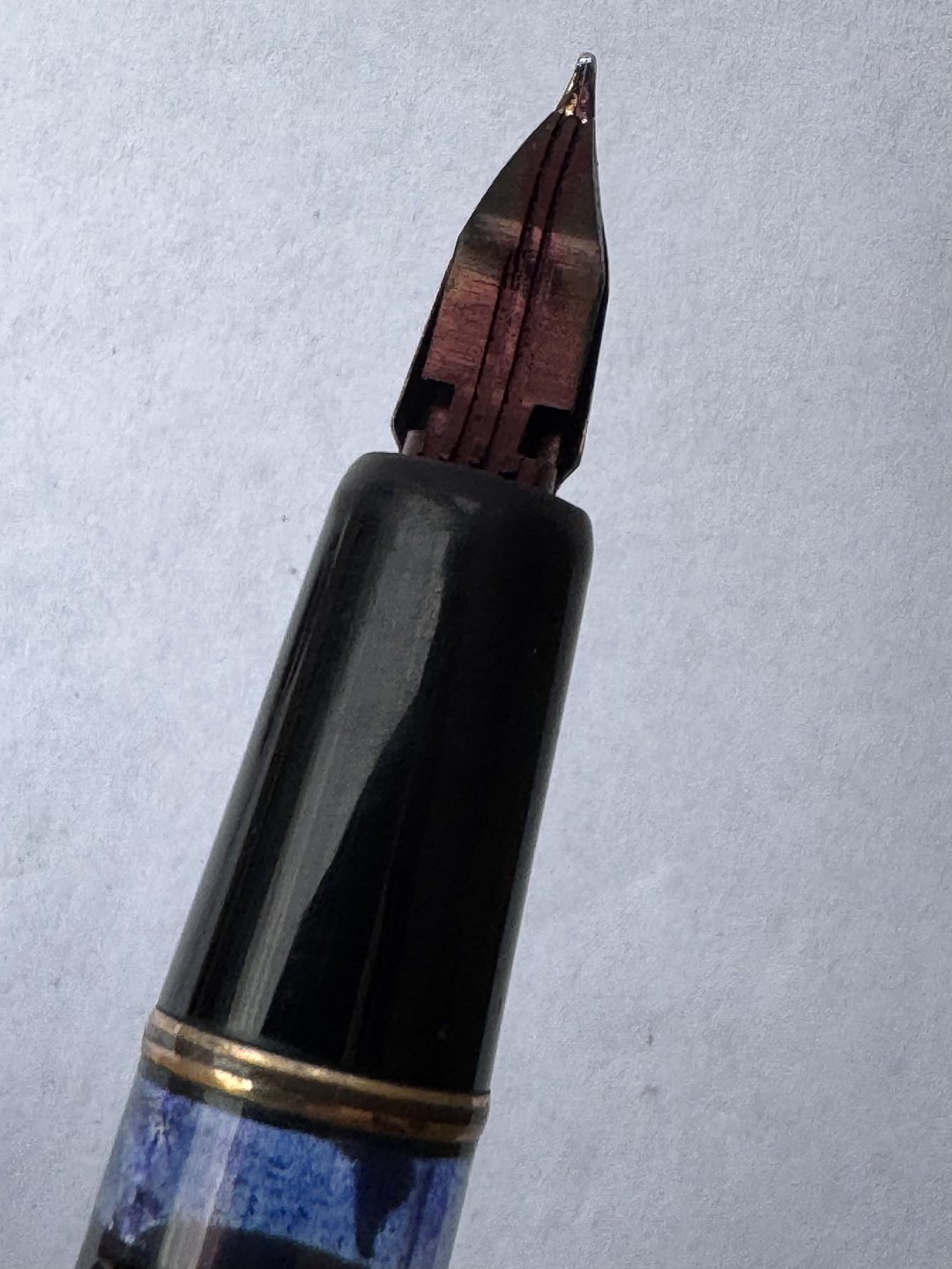 Montblanc gold nib. The model number is engraved on the bottom button. The fountain pen was made in the 1950s in Germany. Dimensions: 13 cm.