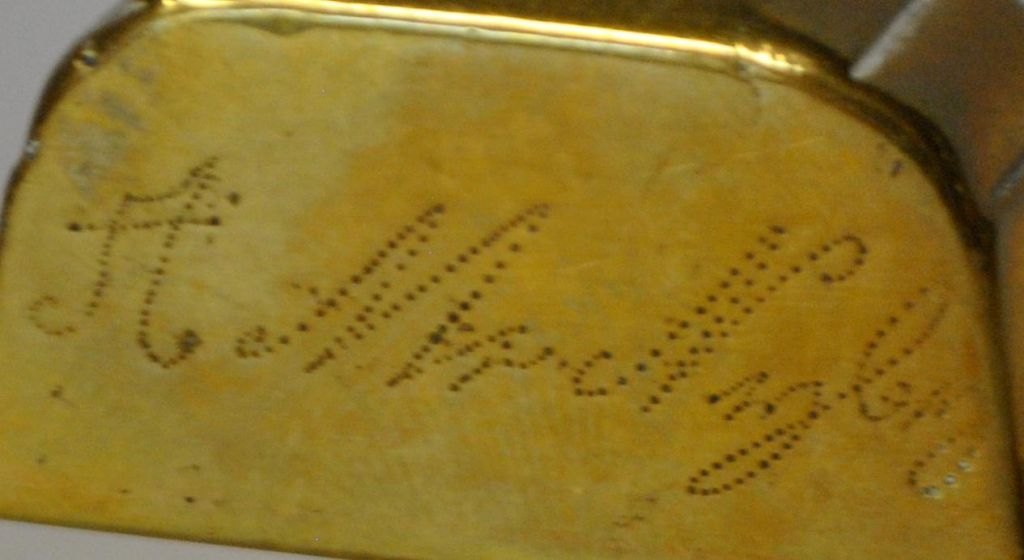Brass candle extinguisher, 19th century. Denmark. L.: 16 cm. With inscription: AM Nyborg.