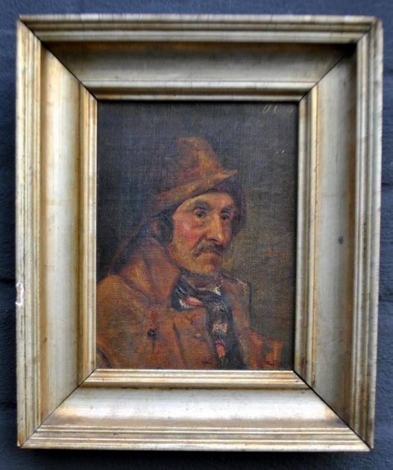 Carlsen, Oscar Conrad (1840 - 1864) Denmark: Portrait of a fisherman. Oil on canvas/cardboard. Signed: OC 1856. 15 x 11 cm.