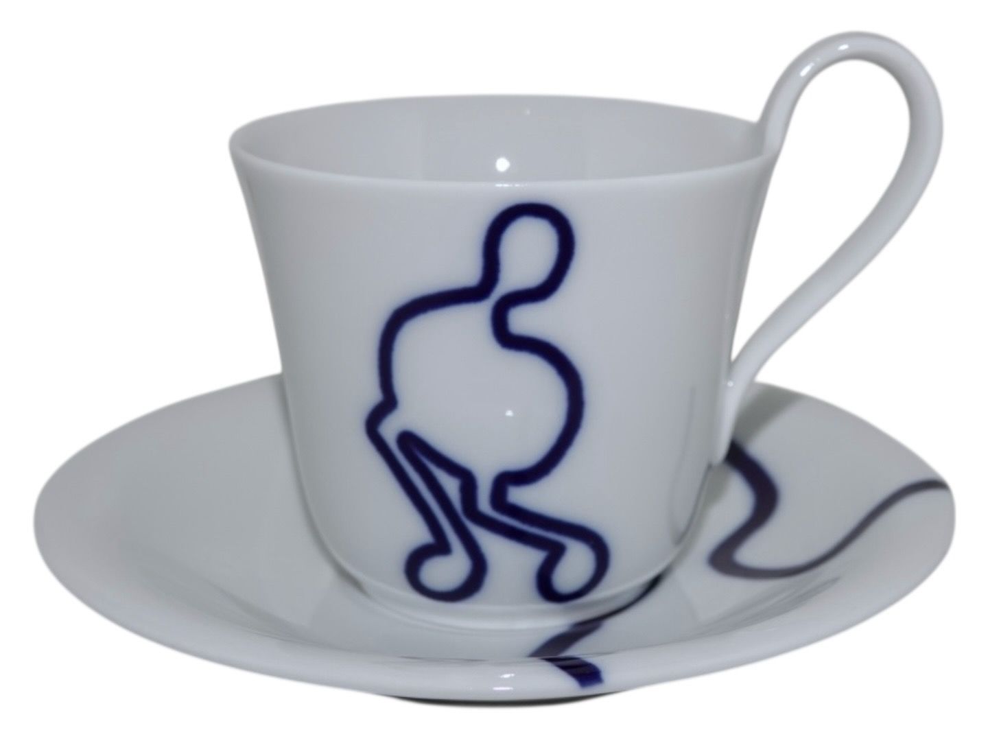 Royal Copenhagen Musica, high handle cup with matching saucer. Decoration B.