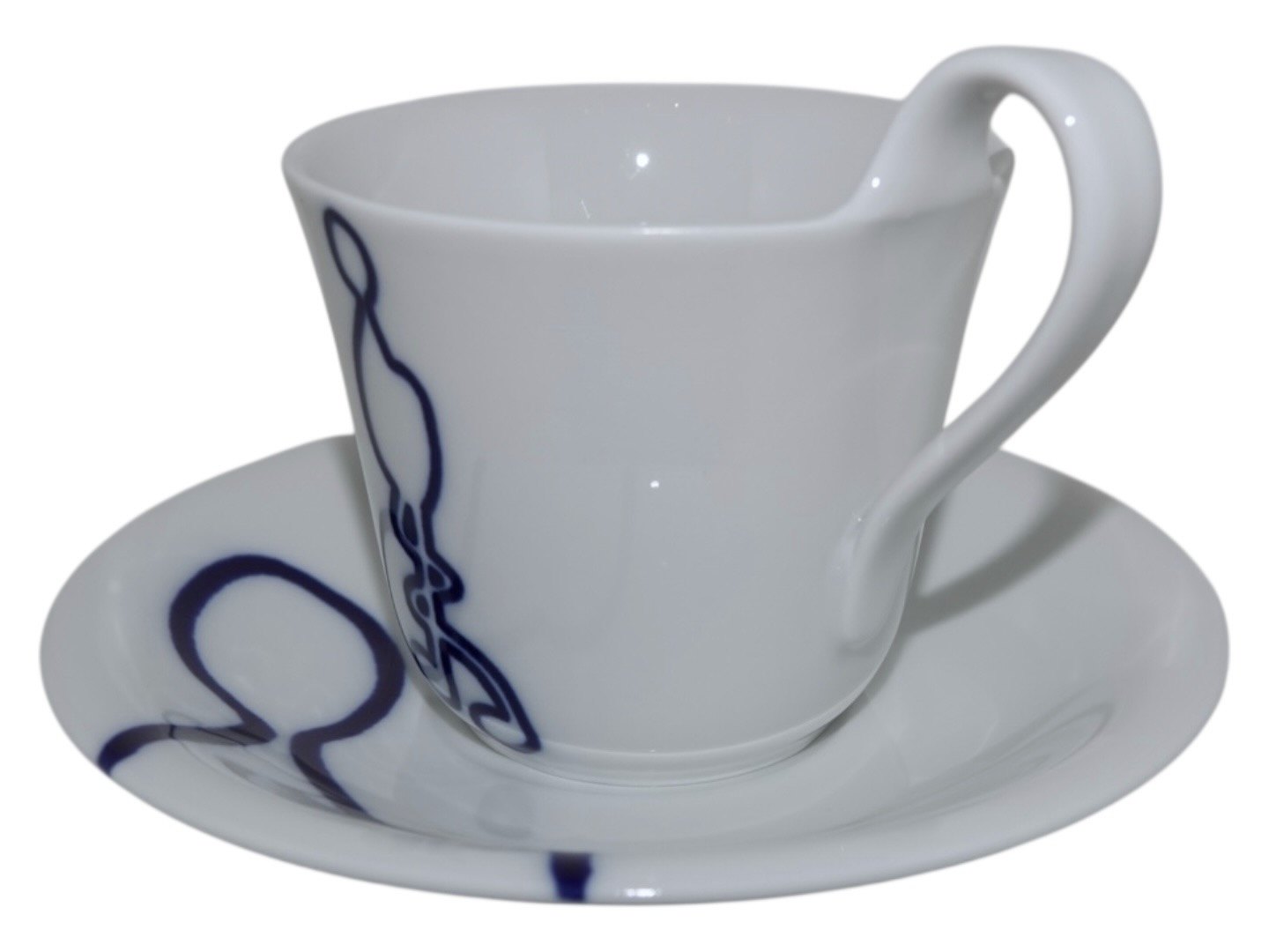 Royal Copenhagen Musica, high handle cup with matching saucer. Decoration E.