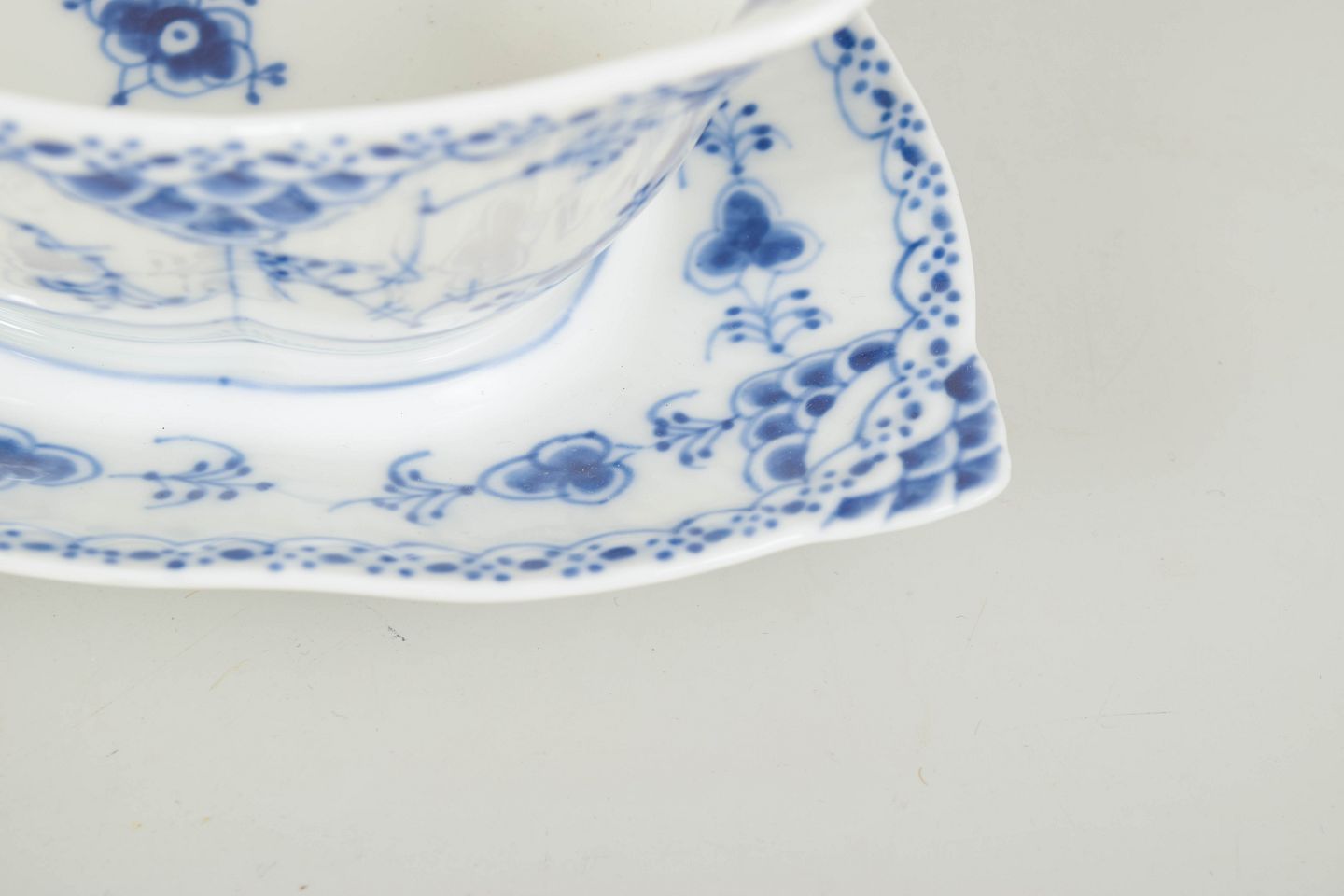 Introduced in 1885, Blue Fluted Half Lace represents a more decorative evolution of the original Blue Fluted Plain service. Sauceboats with integrated stands were essential elements of formal table settings, combining functionality with Royal Copenhagen’s renowned hand-painted craftsmanship. Late 20th-century examples continue this tradition with consistent quality and timeless design.
