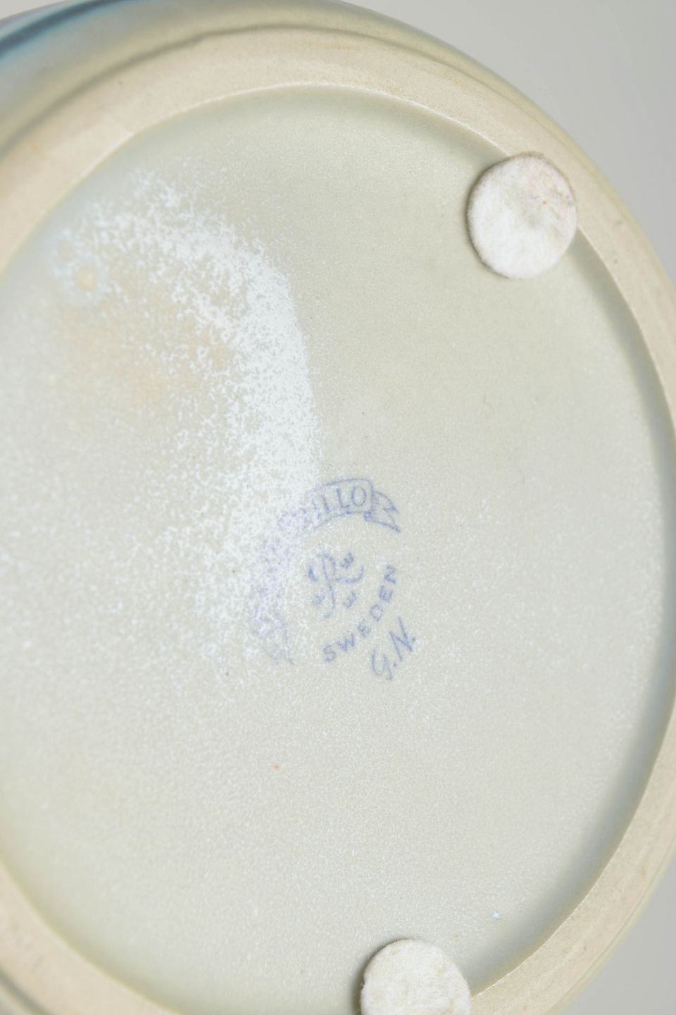 Gunnar Nylund was one of the most influential Swedish ceramic designers of the 20th century and served as artistic director at Rörstrand from 1931 to 1955. The “Banderillo” series demonstrates his refined sense of proportion, rhythm, and graphic surface decoration, using repeated bands and subtle color contrasts to achieve a calm modernist expression. His works are today highly sought after within Scandinavian modern design.