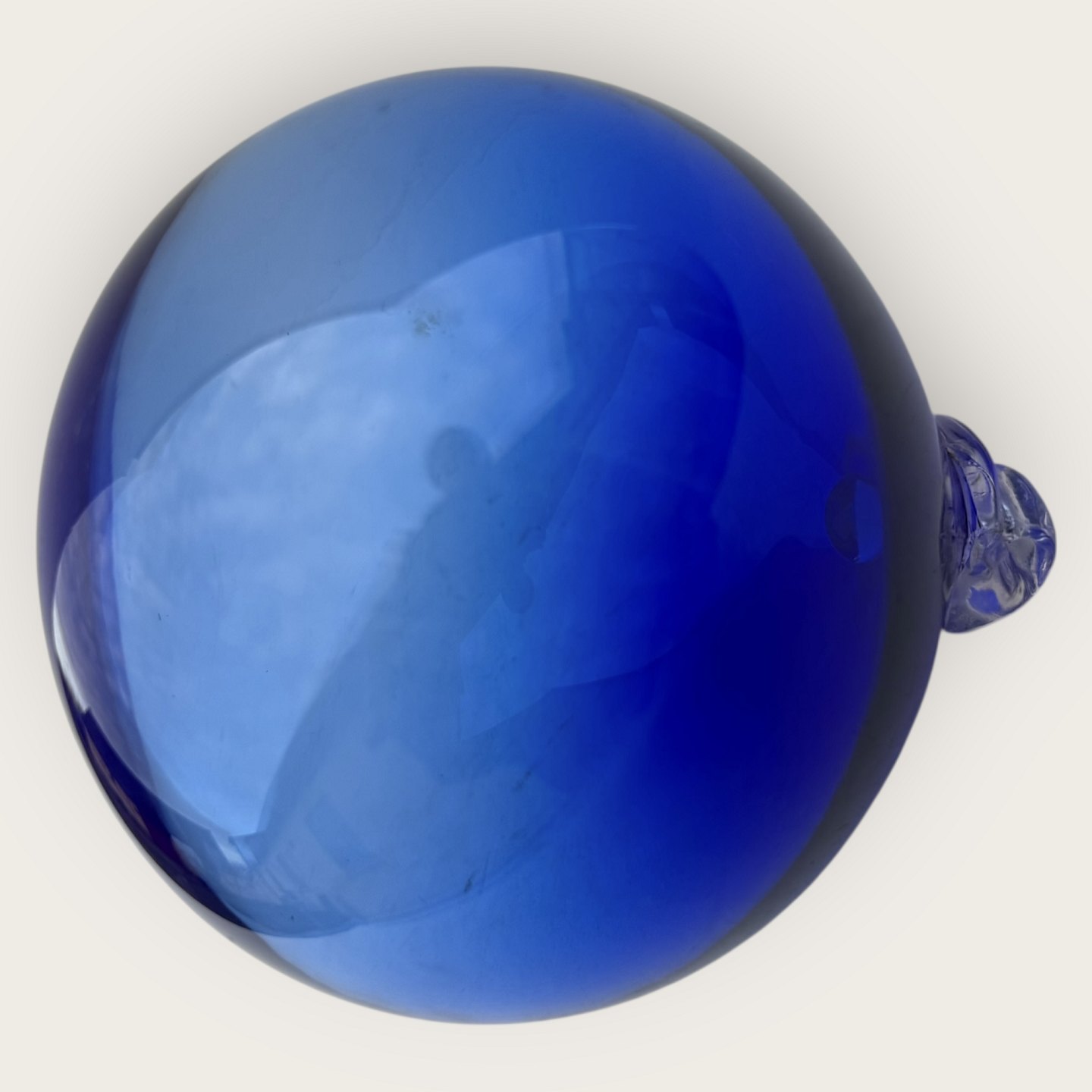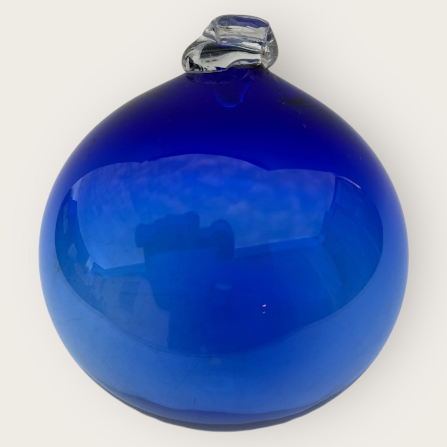 Blue glass ball for hanging or for use with Carnaby / Otto Bauer vases, possibly made at Holmegaard, Approx. 11 cm in diameter *Nice used condition*
