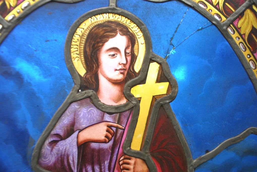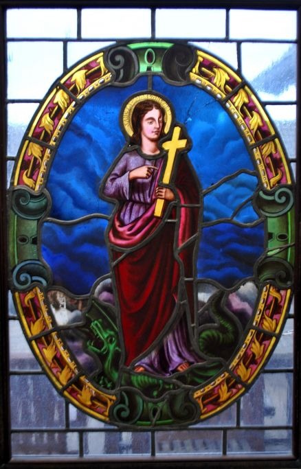 Catholic church mosaic, stained glass, 19th century. Motif with Santa Margherita.