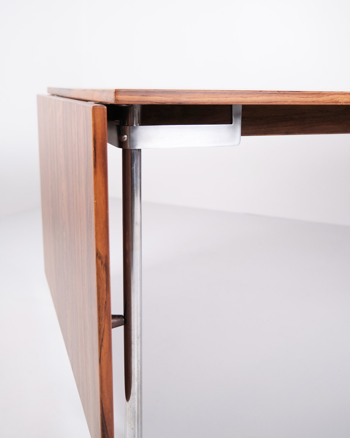 Dining table model AT 319 by Hans J. Wegner for Andreas Tuck. Rio rosewood with steel legs and 2 extension leaves. Danish design from the 1960s.