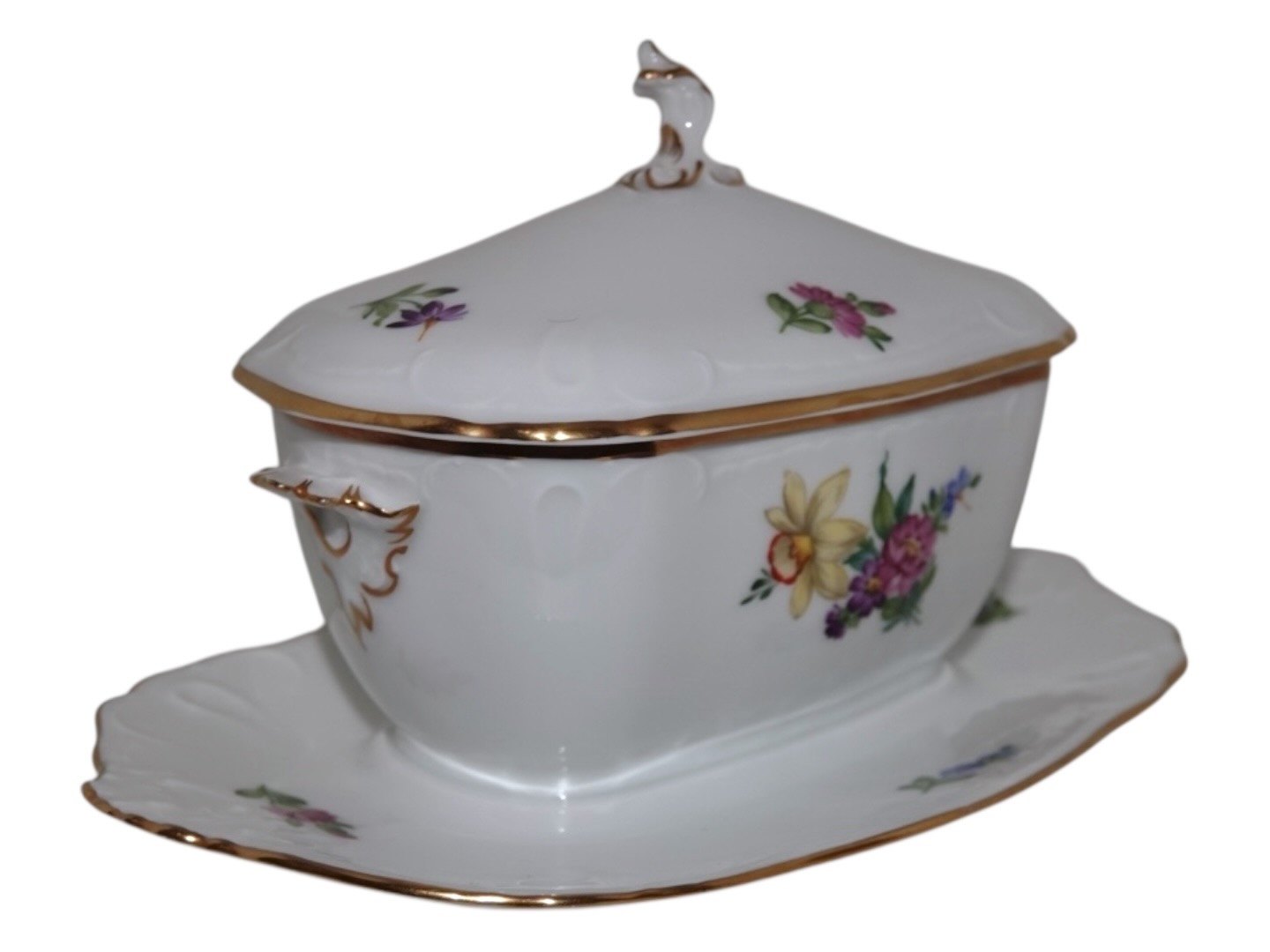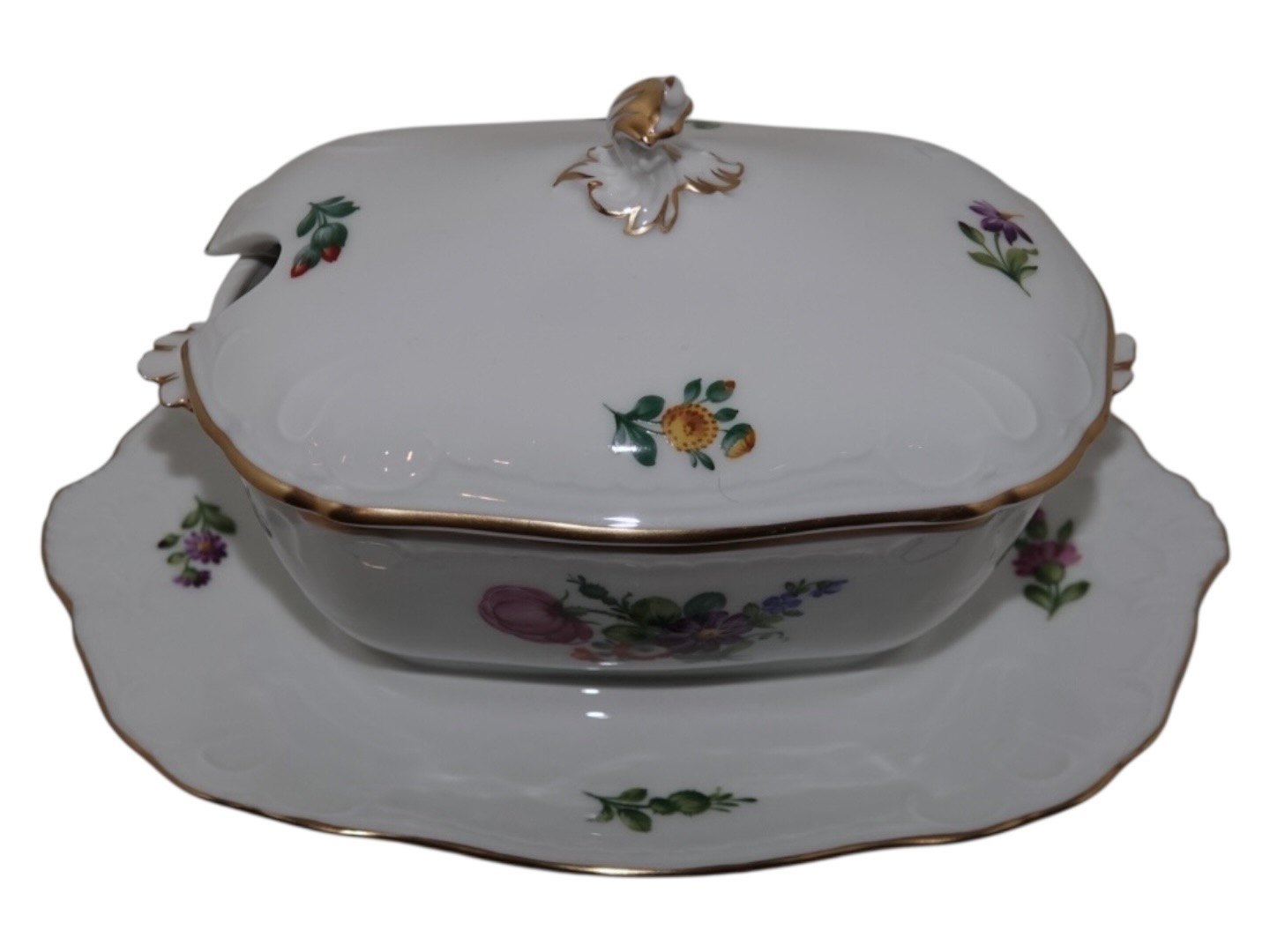 Royal Copenhagen Sachian Flower, rare square lidded gravy boat.
