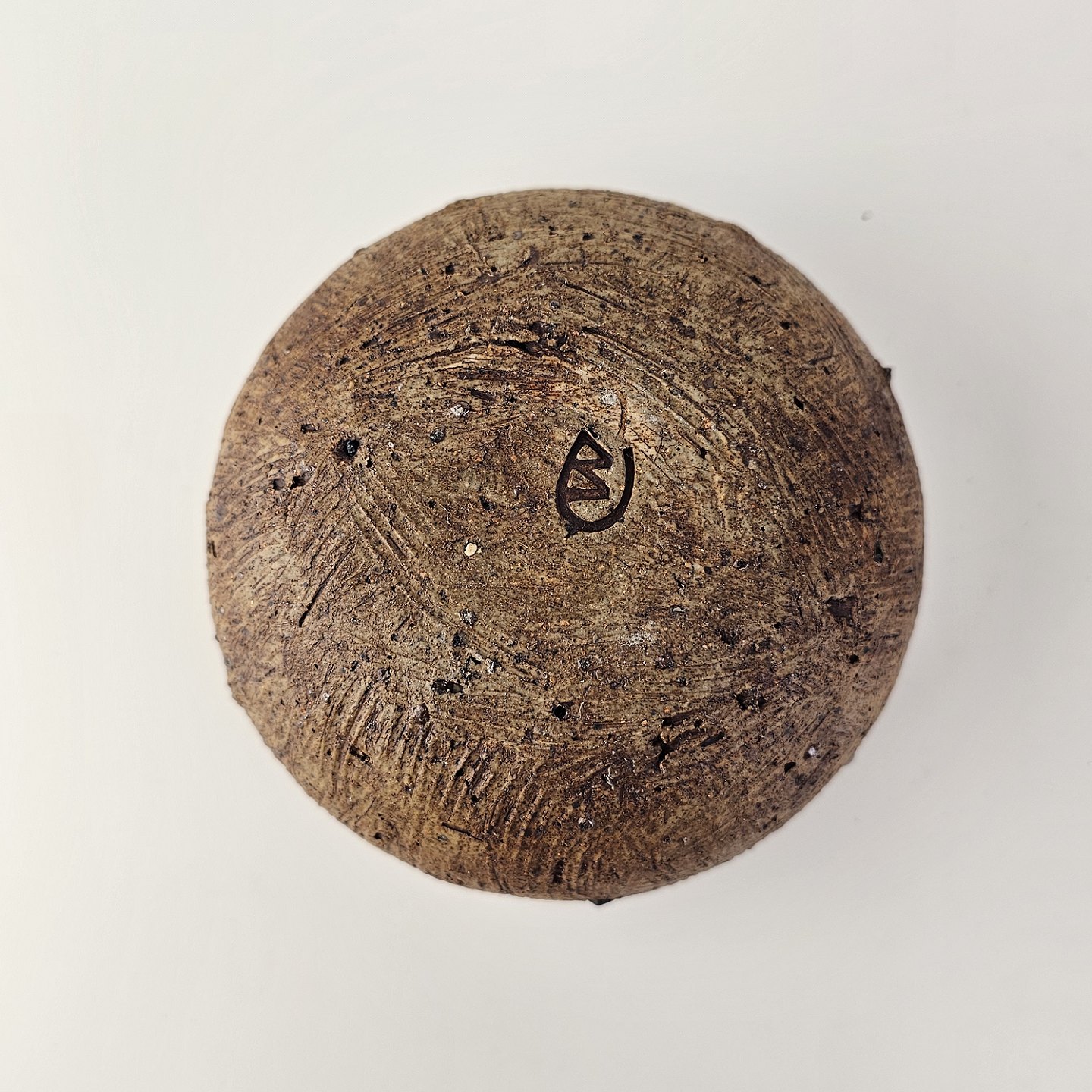Lille keramik skål der er uglasseret udvendigt, og stribet mønster indvendigt
