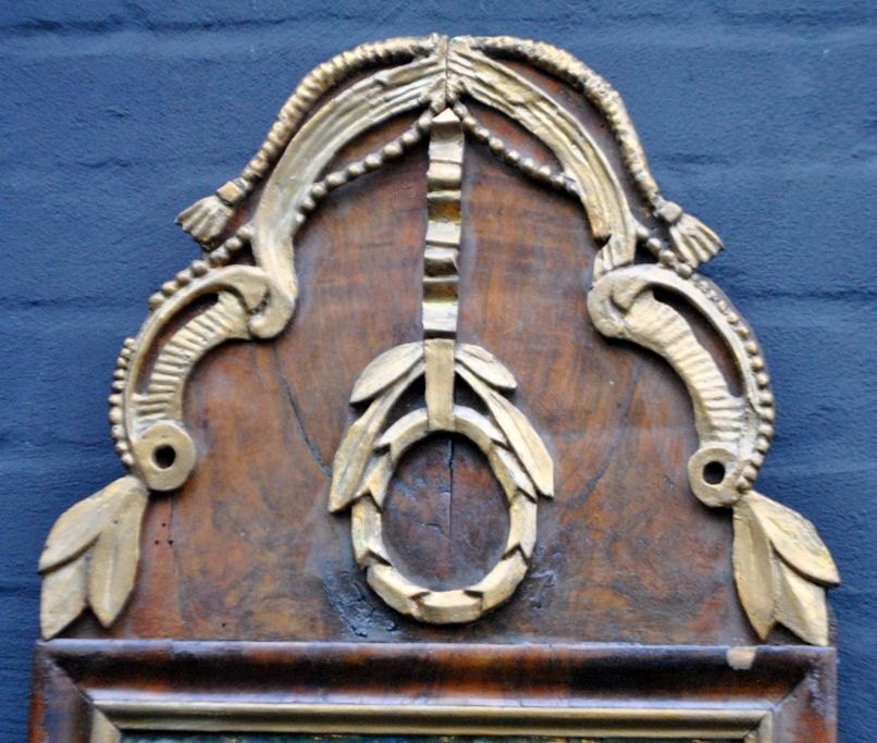 Danish Louis XVI mirror, walnut veneer, circa 1780. H.: 70 cm. W.: 34 cm.