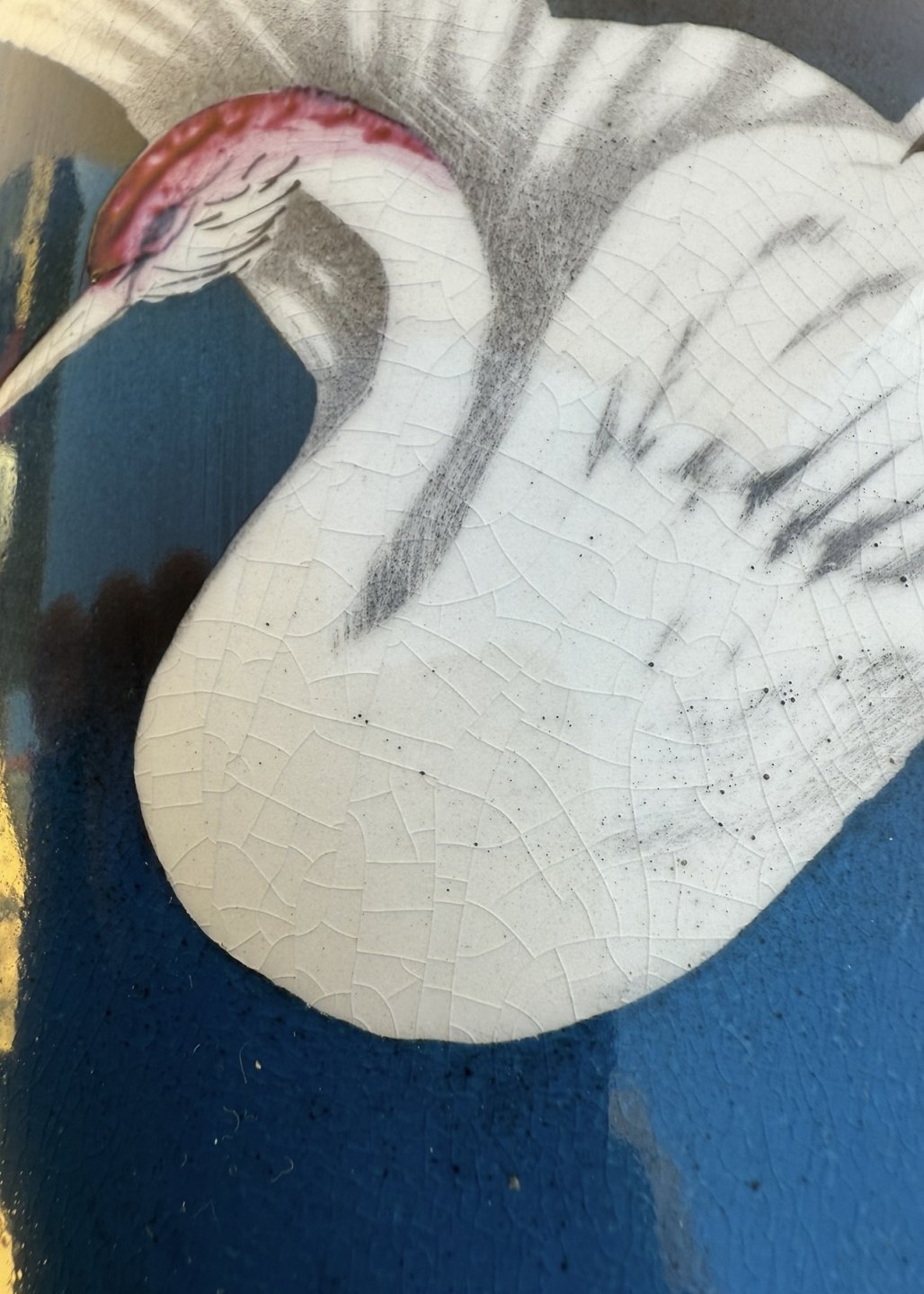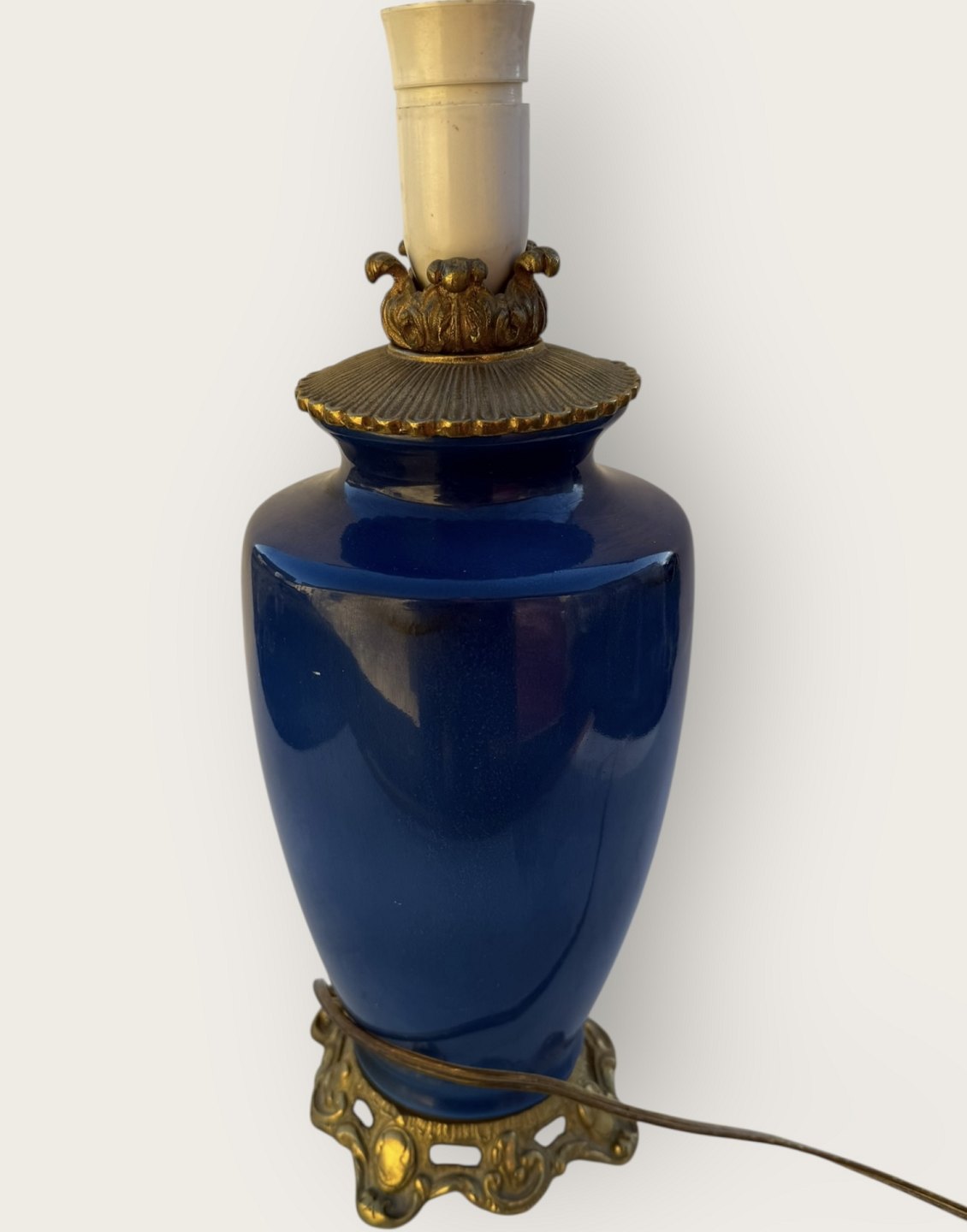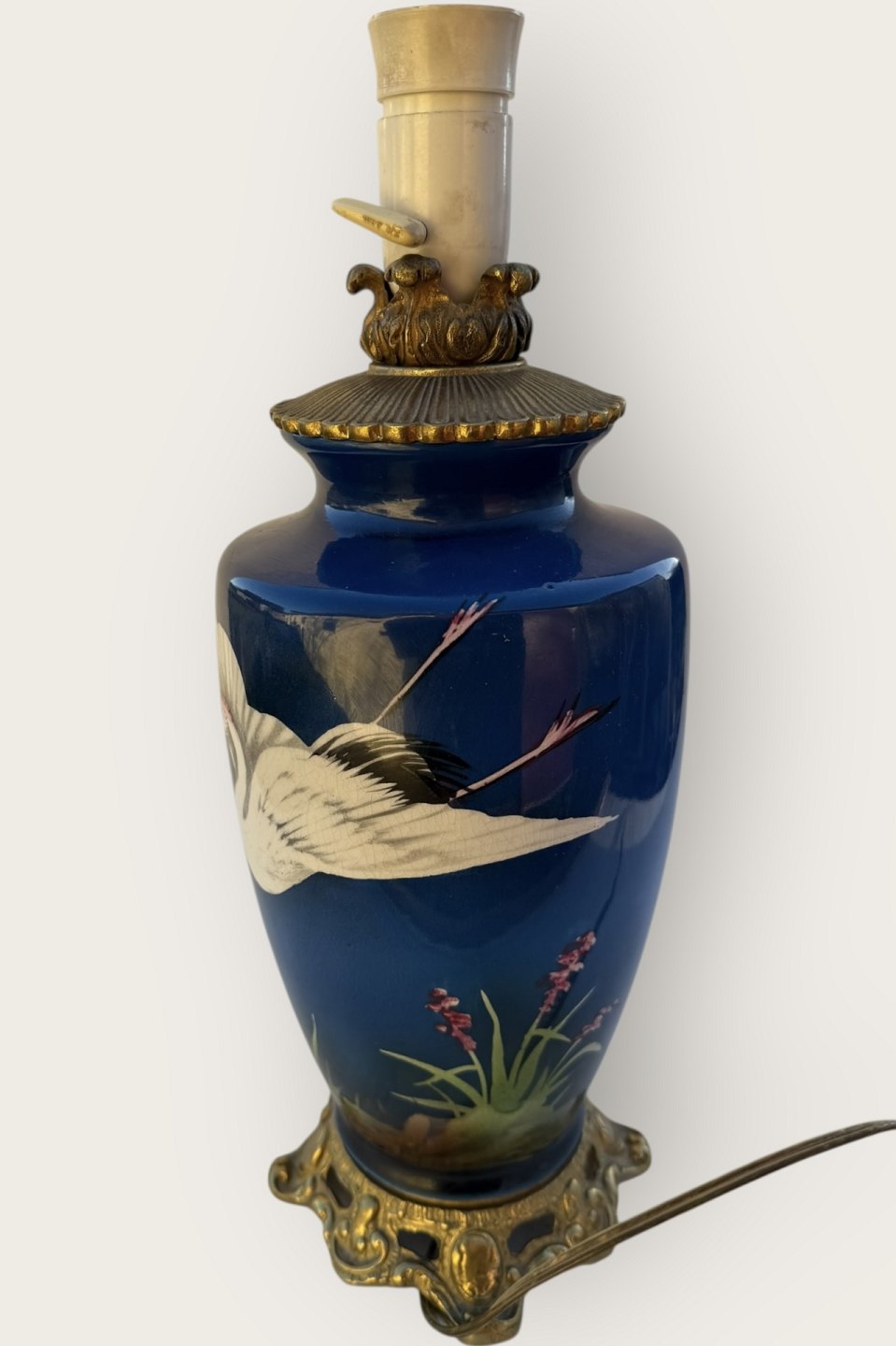 Large table lamp with flying bird in porcelain and brass, height with socket 39cm *Some small cracks under the glaze (see photo) otherwise in great condition