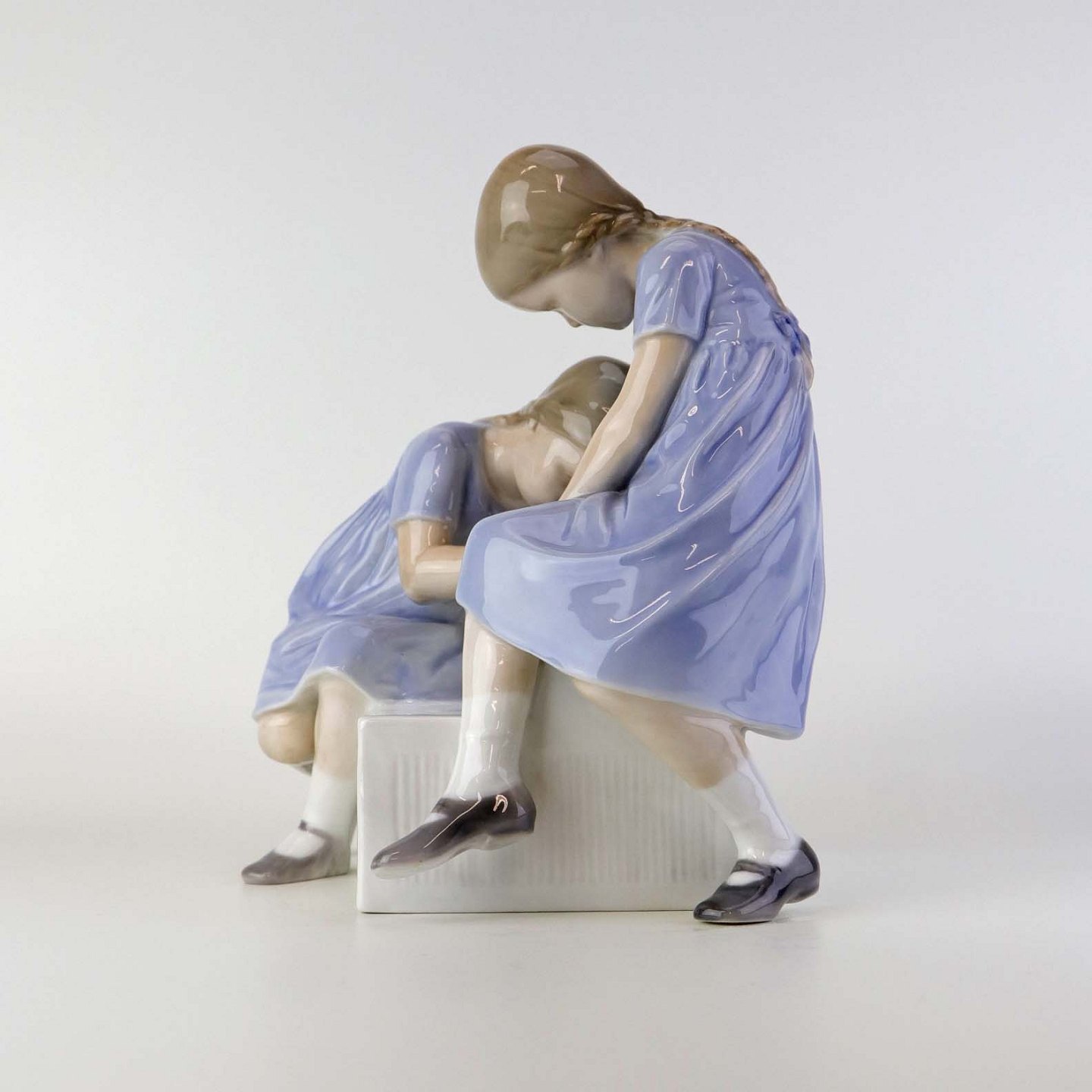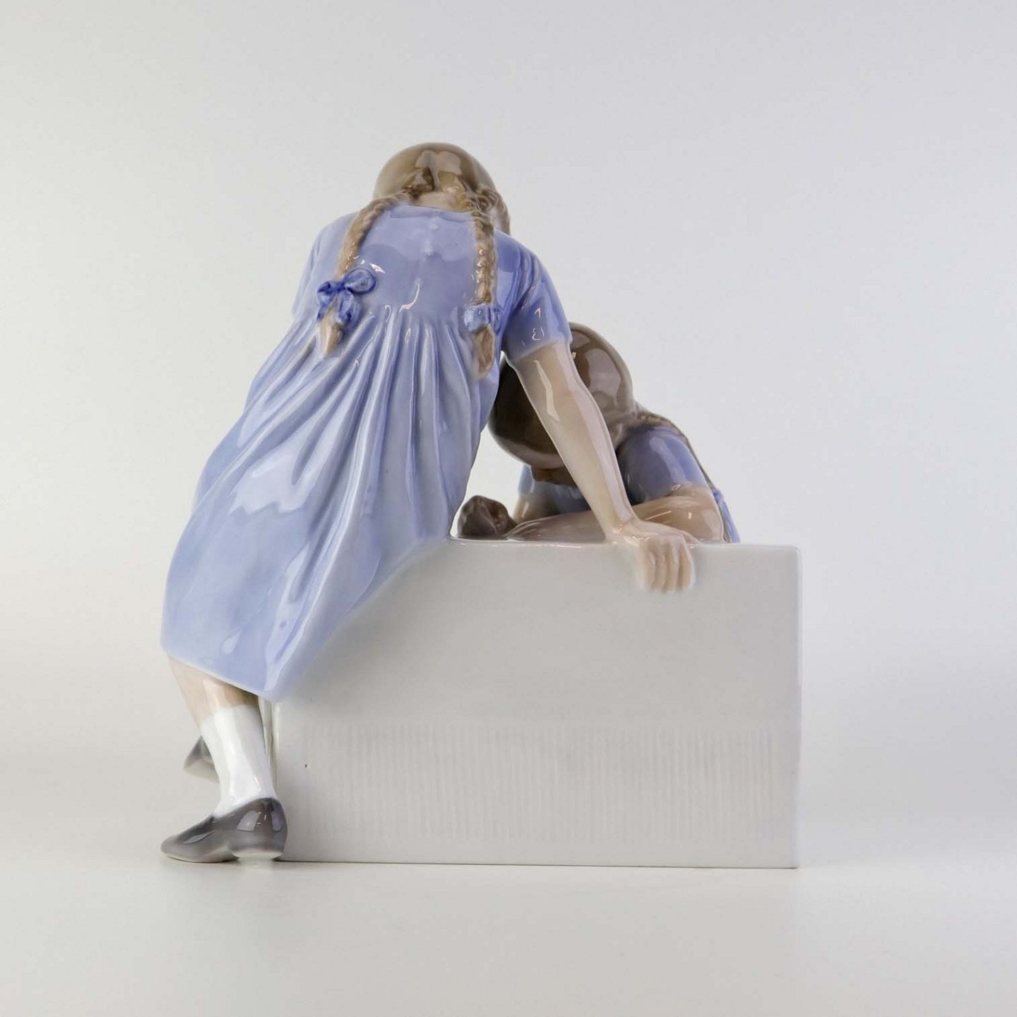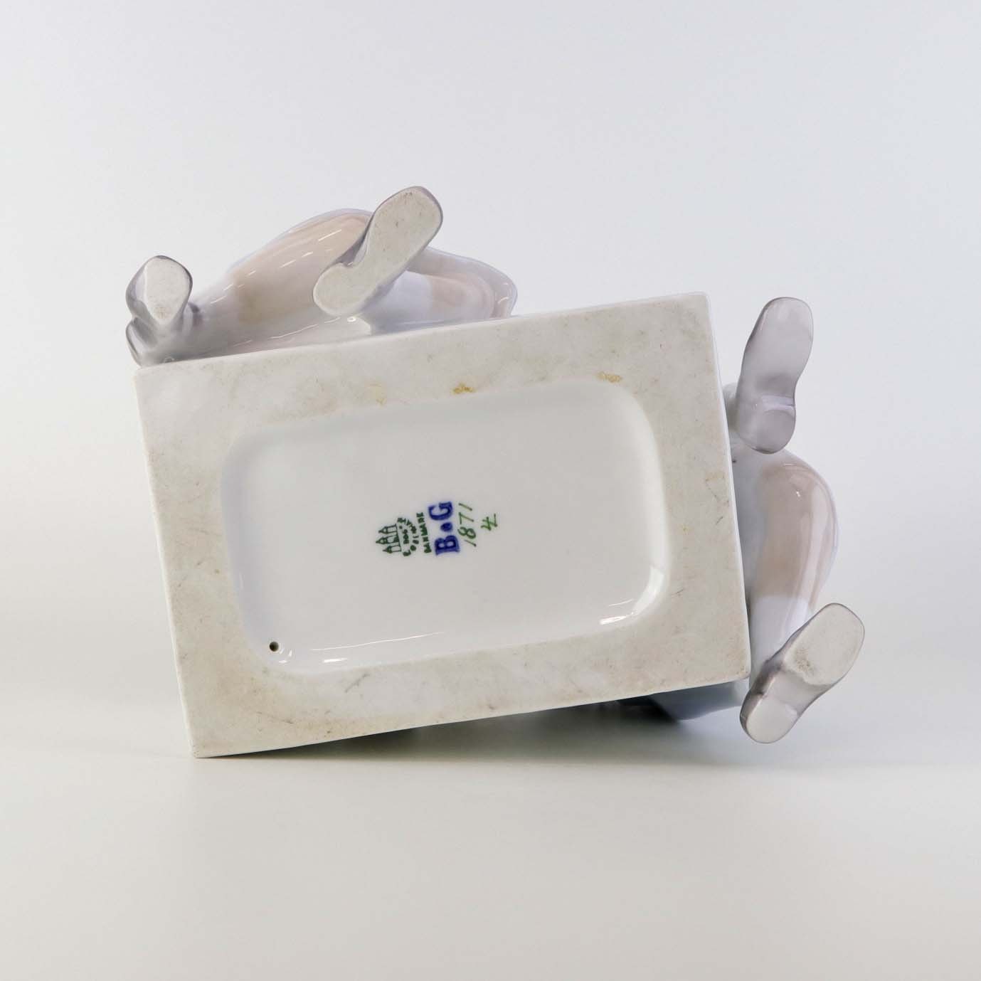 Figur i porcelæn med motiv af to piger på en tappesten. Nr. 1871
