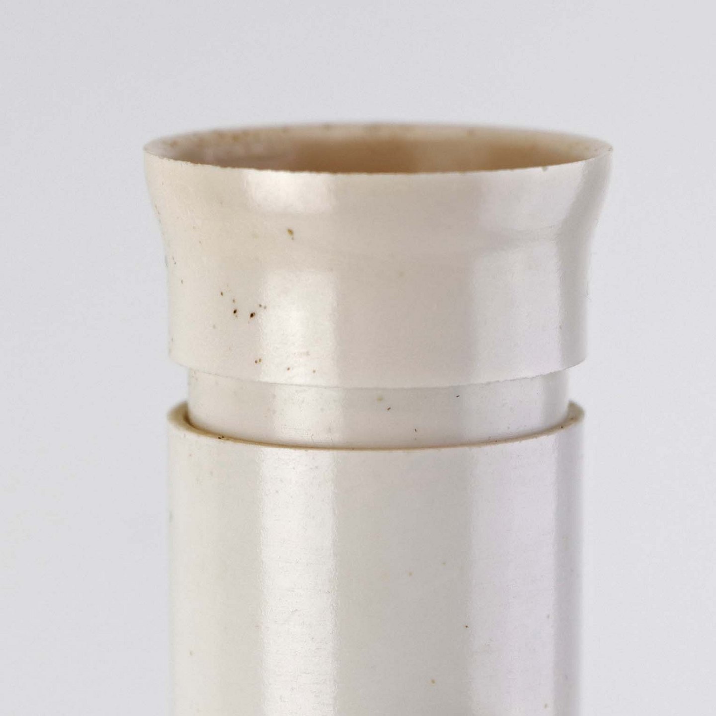 Oval lampefod i keramik med brun og blåsort glasering og lys plastfatning.