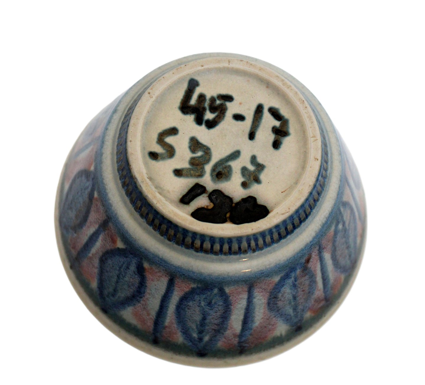 Knabstrup, Unika skål med farveprøver, formen på skålen er fra Knapstrupstellet. Skålen har tilhørt en af malerinderne på Knabstrup.