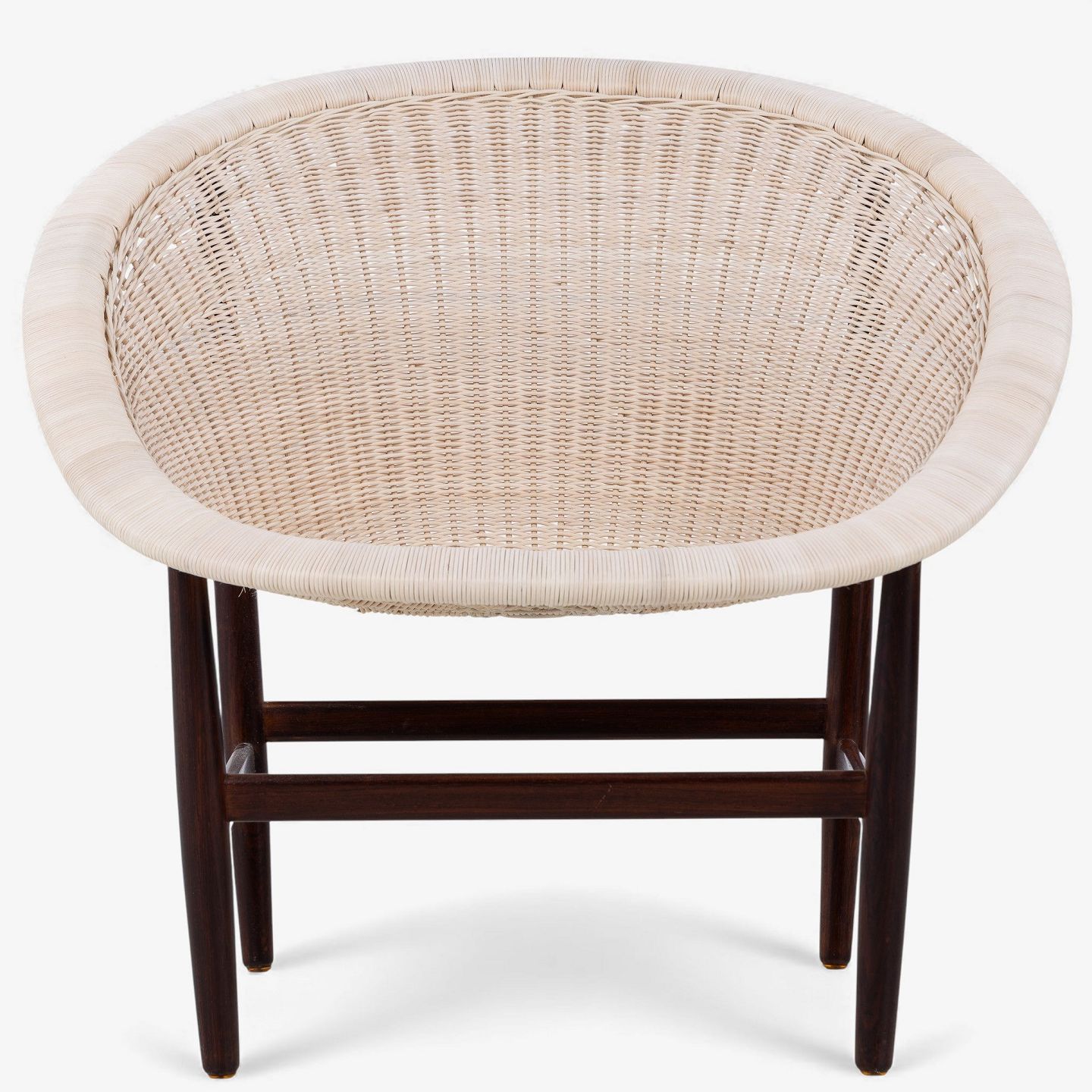 Rare 'Basket Chair' armchair in patinated rosewood with new cane seat. Designed in 1950.