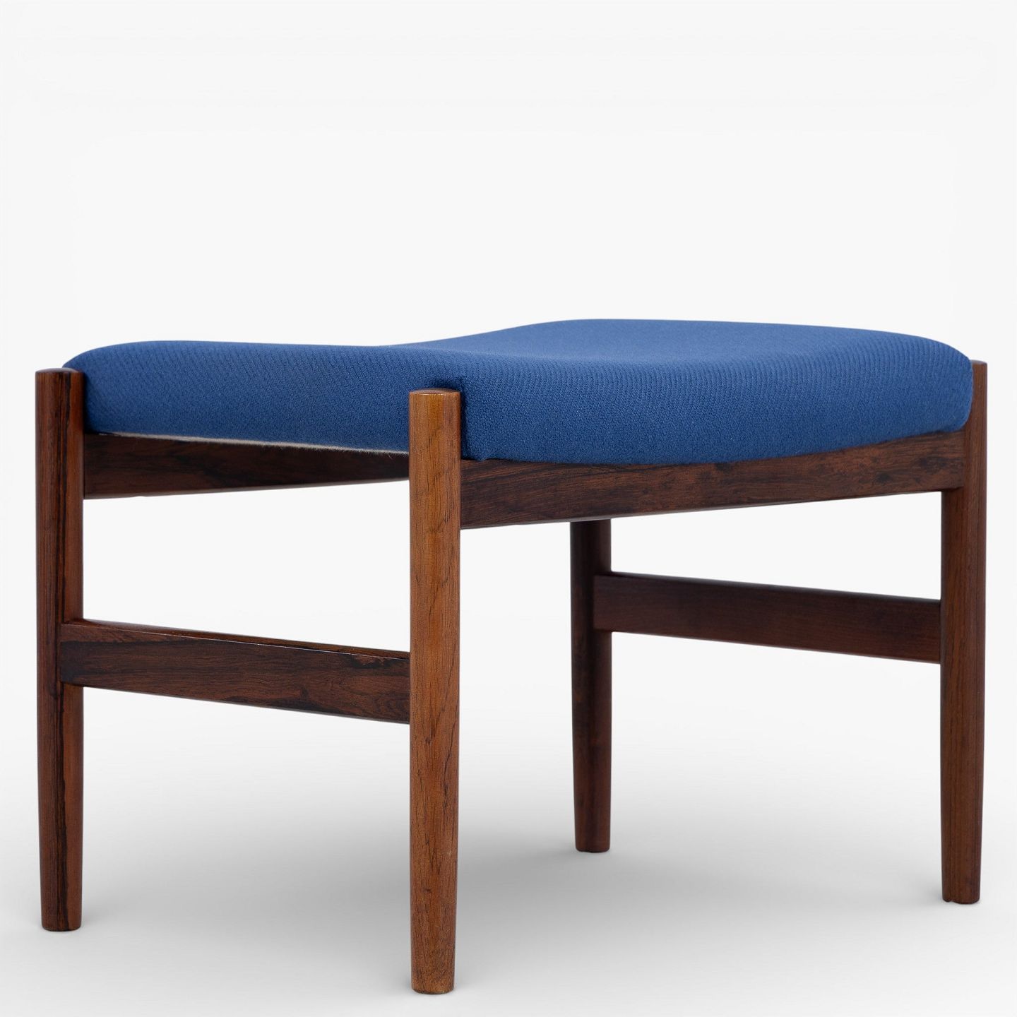 Footstool in patinated rosewood upholstered in blue wool.