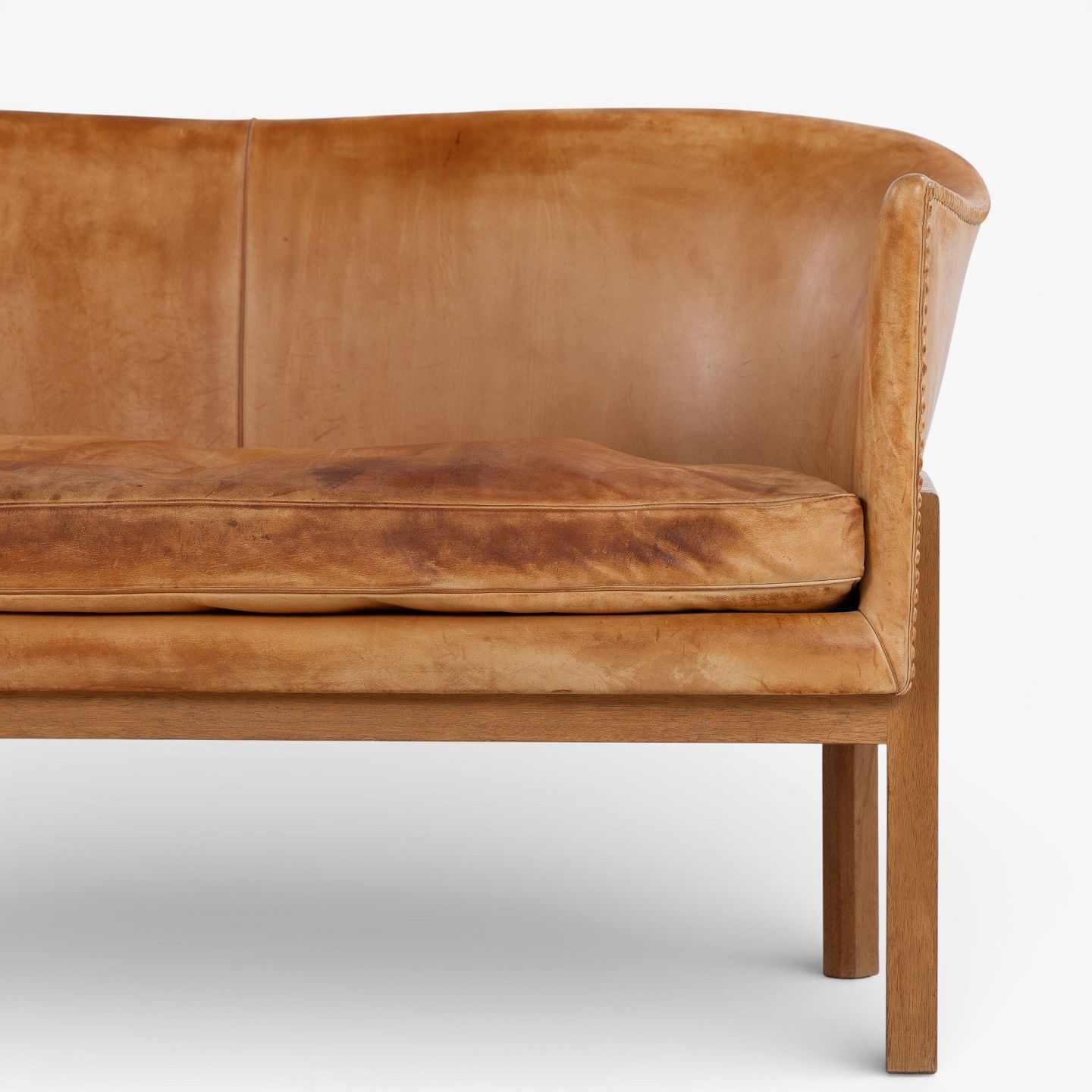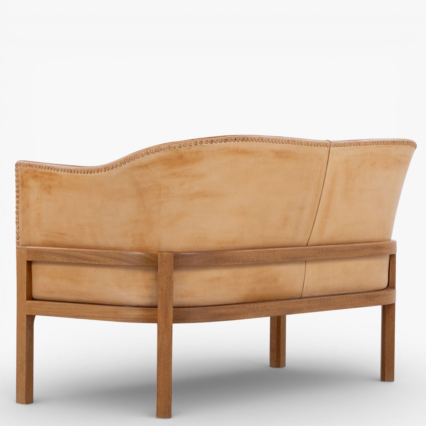 MK 52/2 - 2-seater sofa in patinated, stitched natural leather with a mahogany frame.