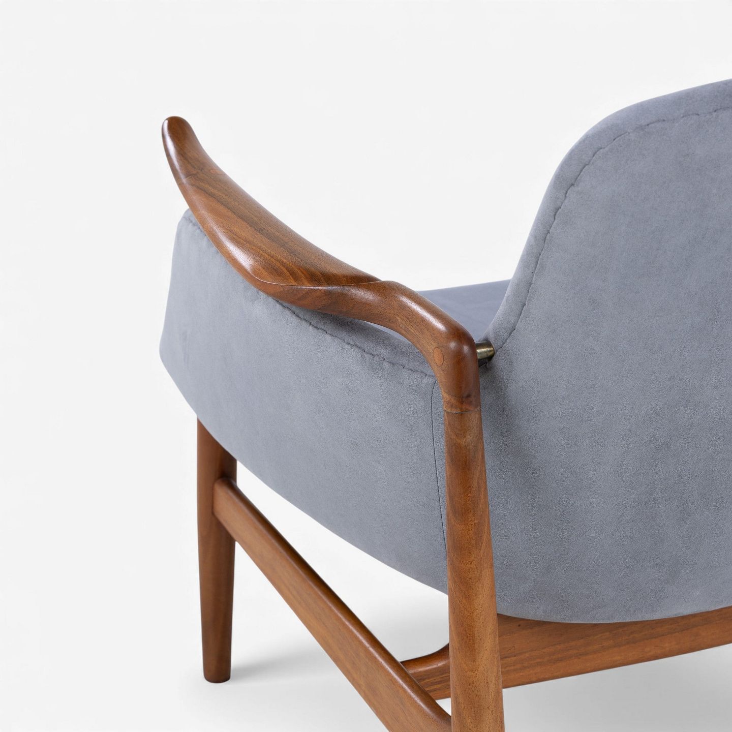 NV 53 - Armchair in grey 'Alcantara' fabric with frame in patinated walnut.