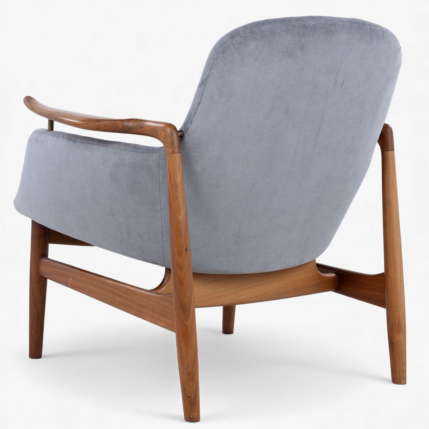 NV 53 - Armchair in grey 'Alcantara' fabric with frame in patinated walnut.