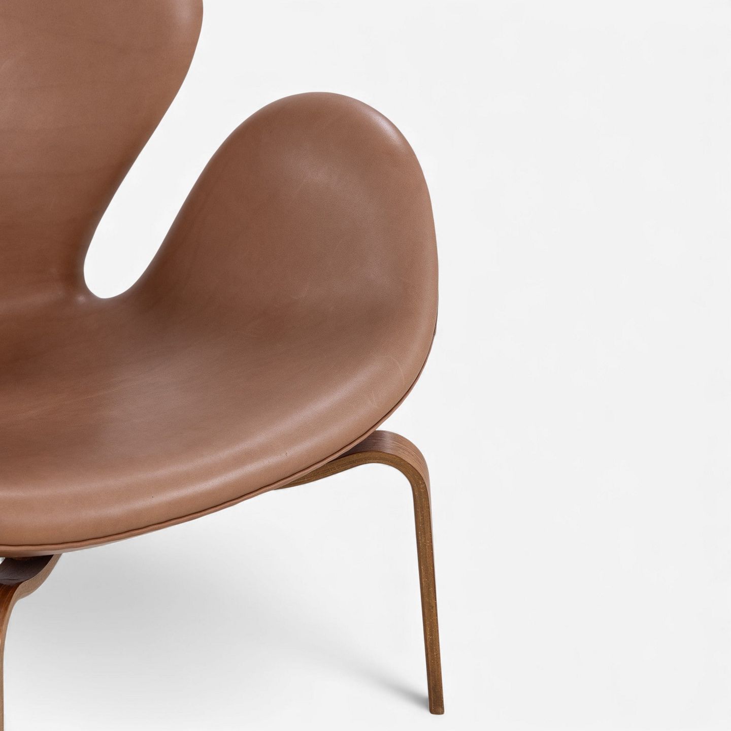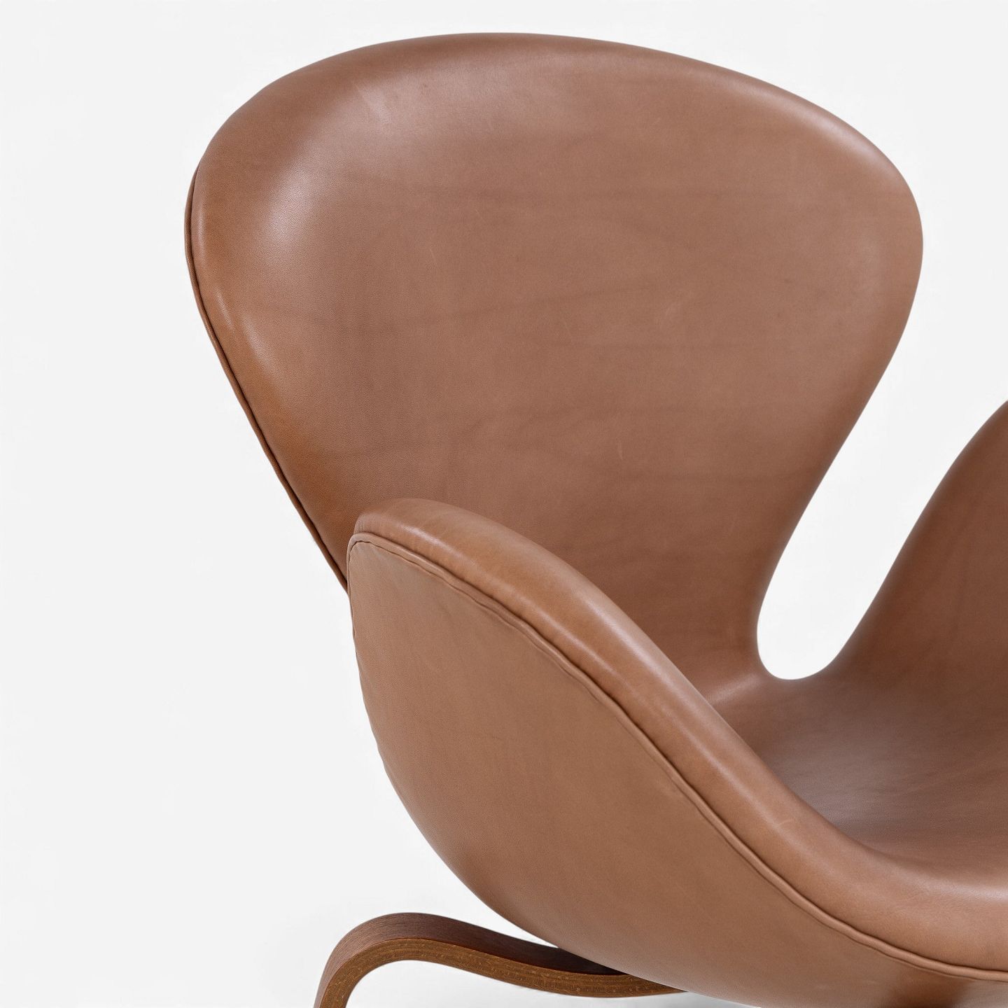 AJ 4325 - 'The Swan' armchair in newer cognac-colored aniline leather with wooden frame. Manufacturer's stamp.