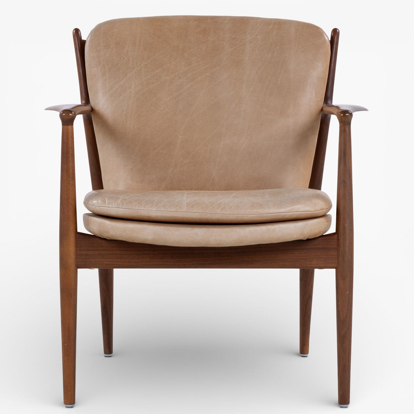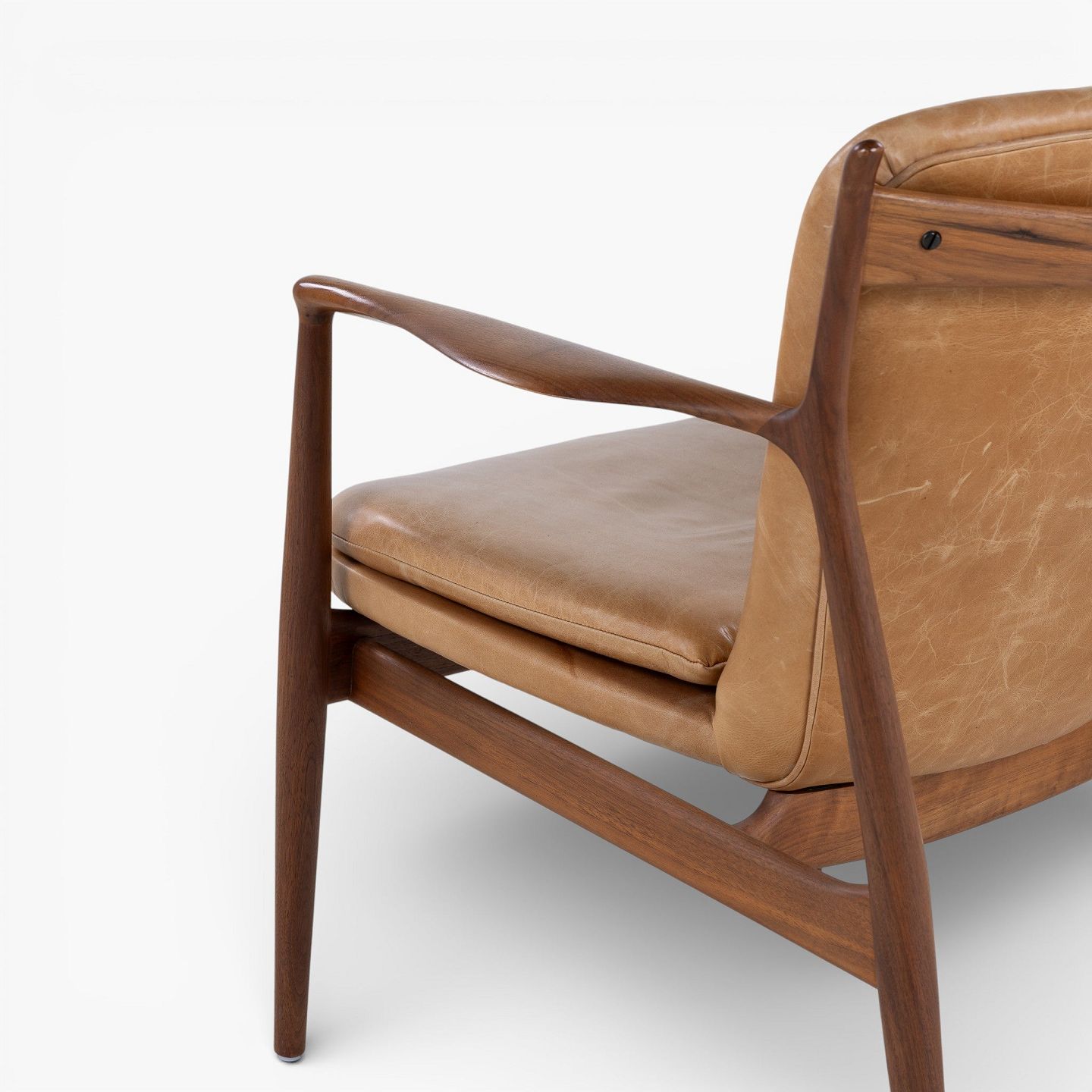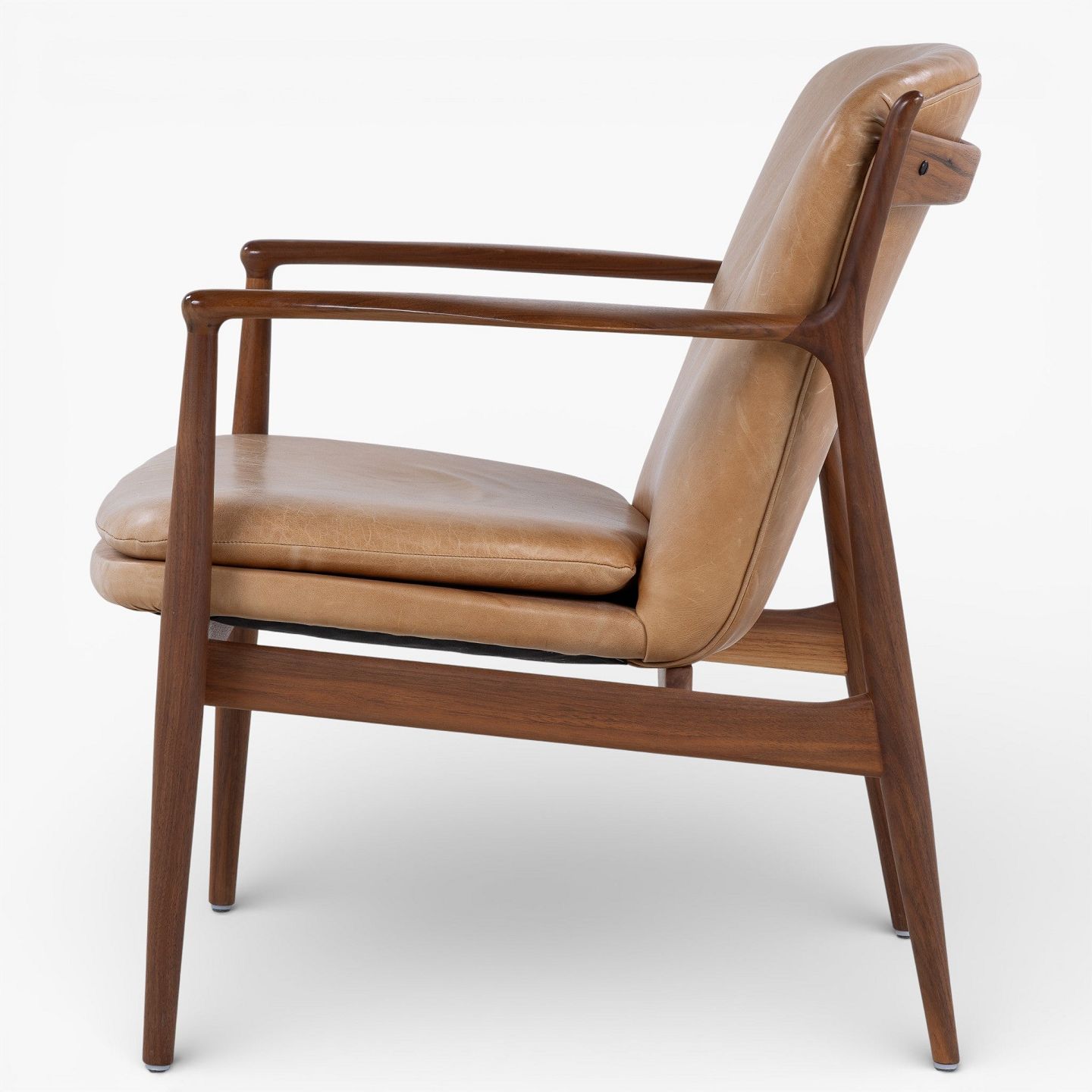 FJ 51 - Pair of 'Delegate Chair' armchairs in walnut and patinated natural leather. Designed in 1951.