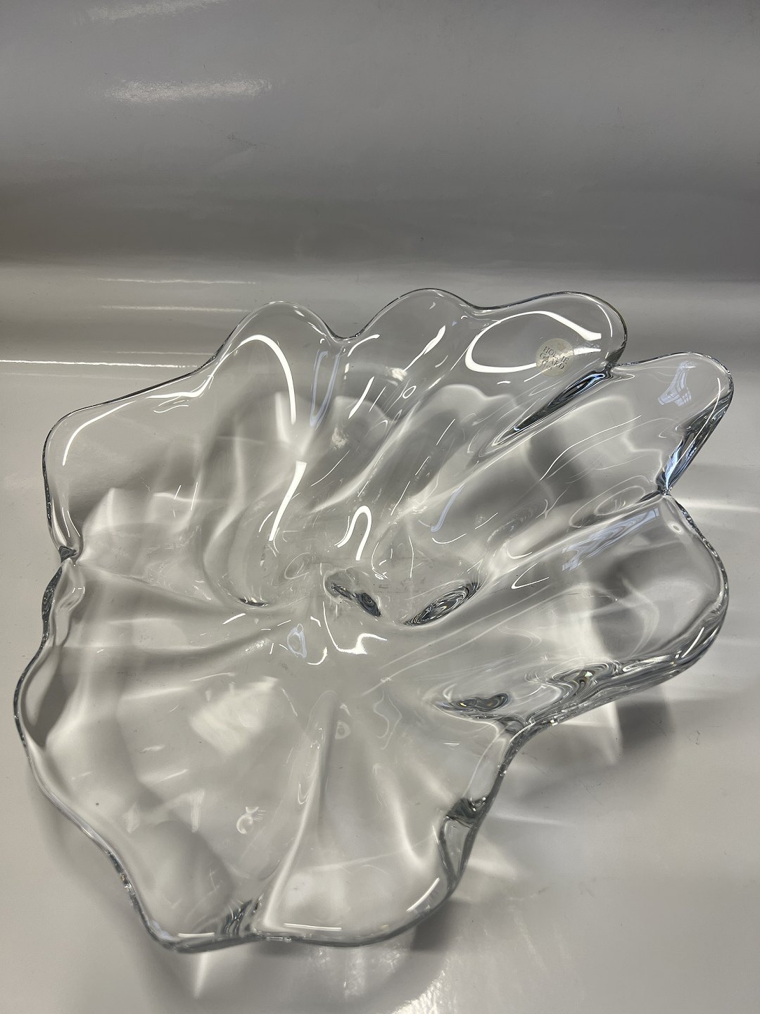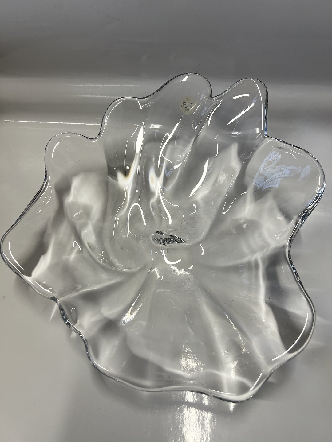 Glass dish from Holmegaard glassworks, natural. Beautiful organic design and solid quality.