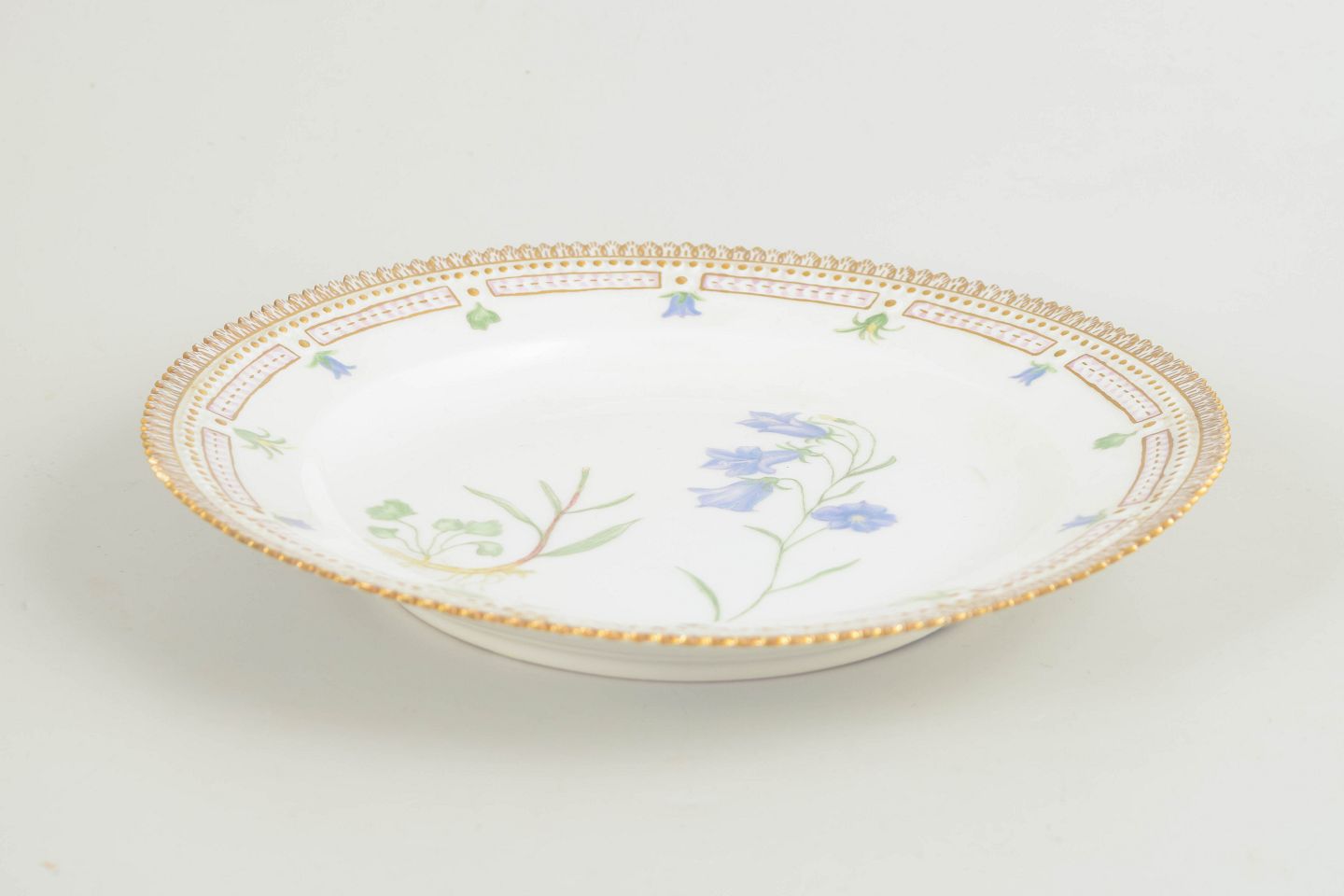 Lunch plate from the Flora Danica service with hand-painted botanical decoration based on original illustrations from the Flora Danica work. Classic form with a richly gilded border.