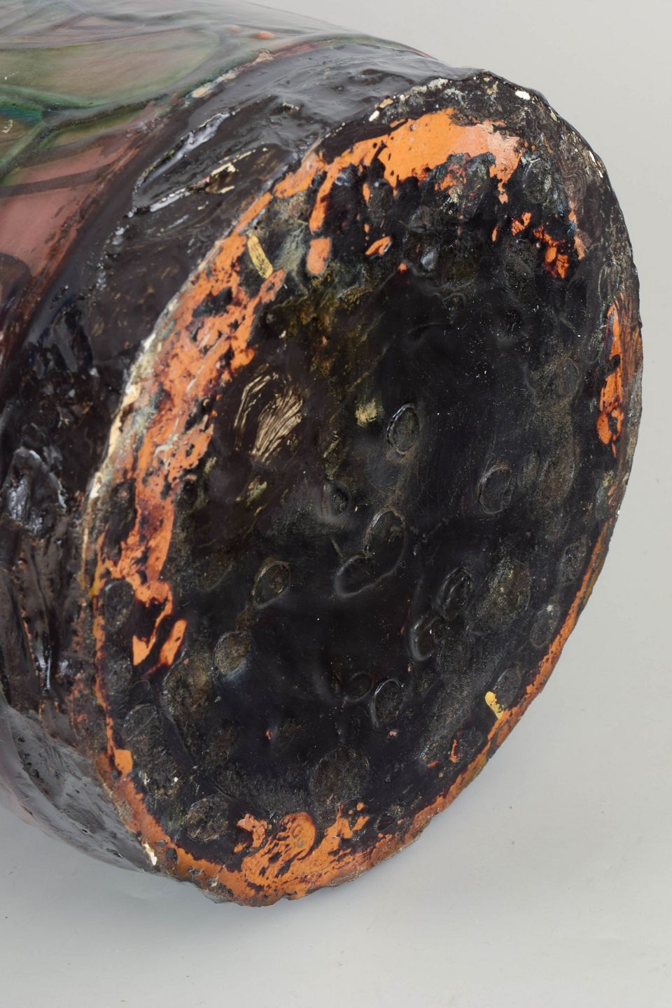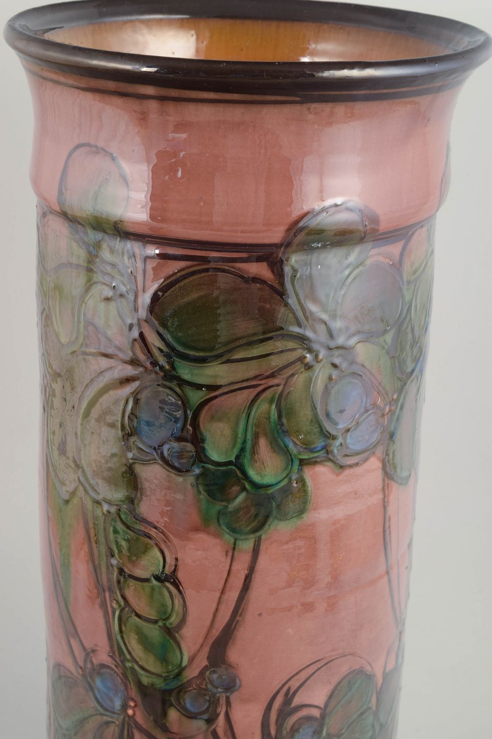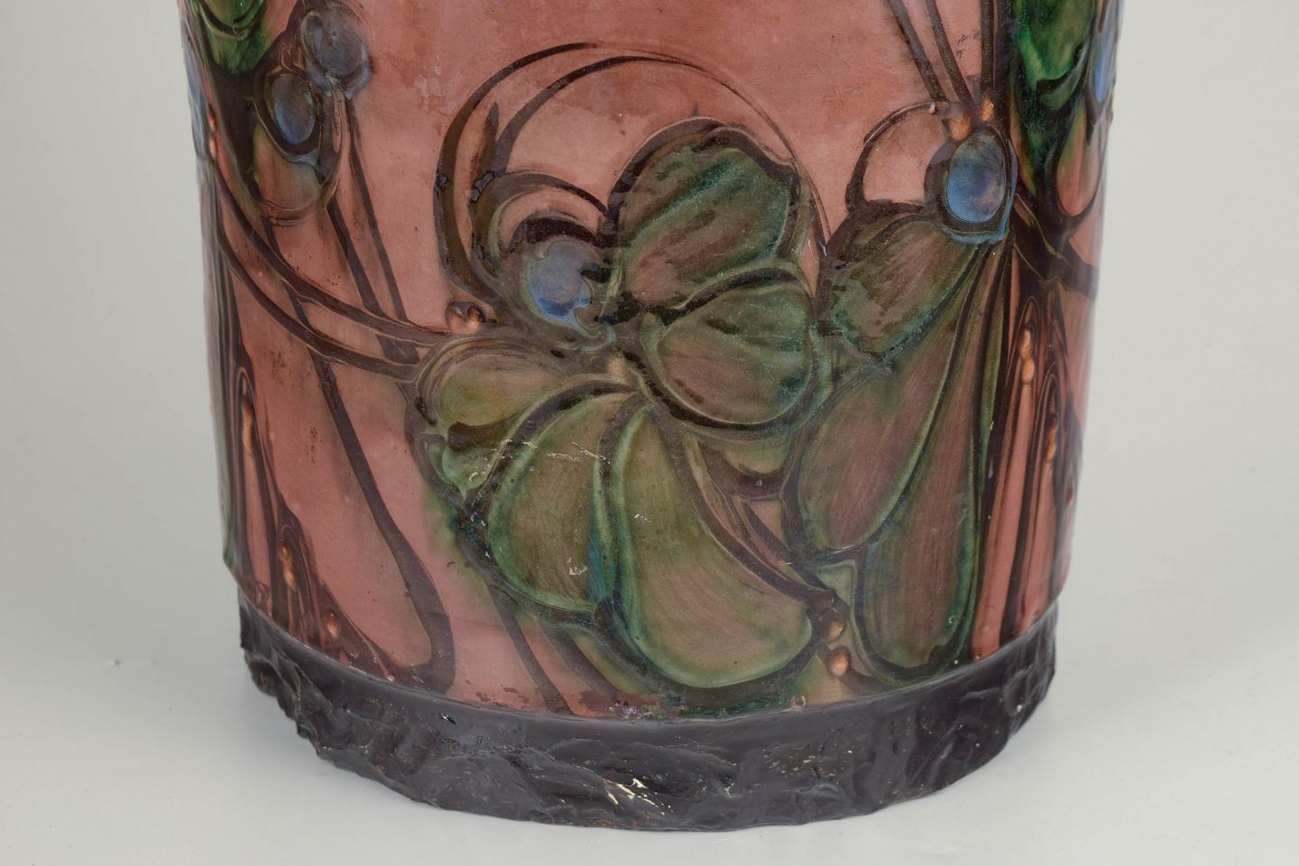During the 1930s, Kähler experienced a creative peak, interpreting the Art Deco style through both form and surface decoration. The period is defined by monumental shapes, rich glazes and hand-painted ornamentation, often inspired by organic and floral themes. Large floor vases such as this were produced in limited numbers and are today considered among the most desirable works from Kähler’s interwar production.