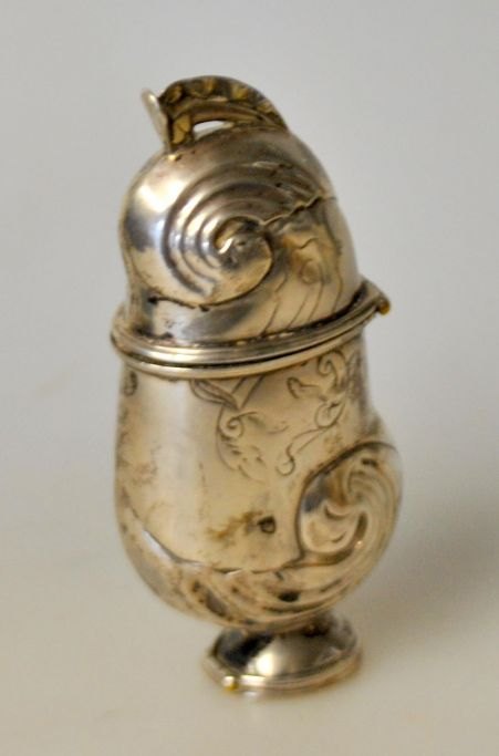 Andreas (Jesper) Kanneworff (1772 - 1854) Ringkøbing, Denmark: Vinagre egg. Rococo. Inside gilded. Stamped in the embalming chamber. Height: 8 cm.