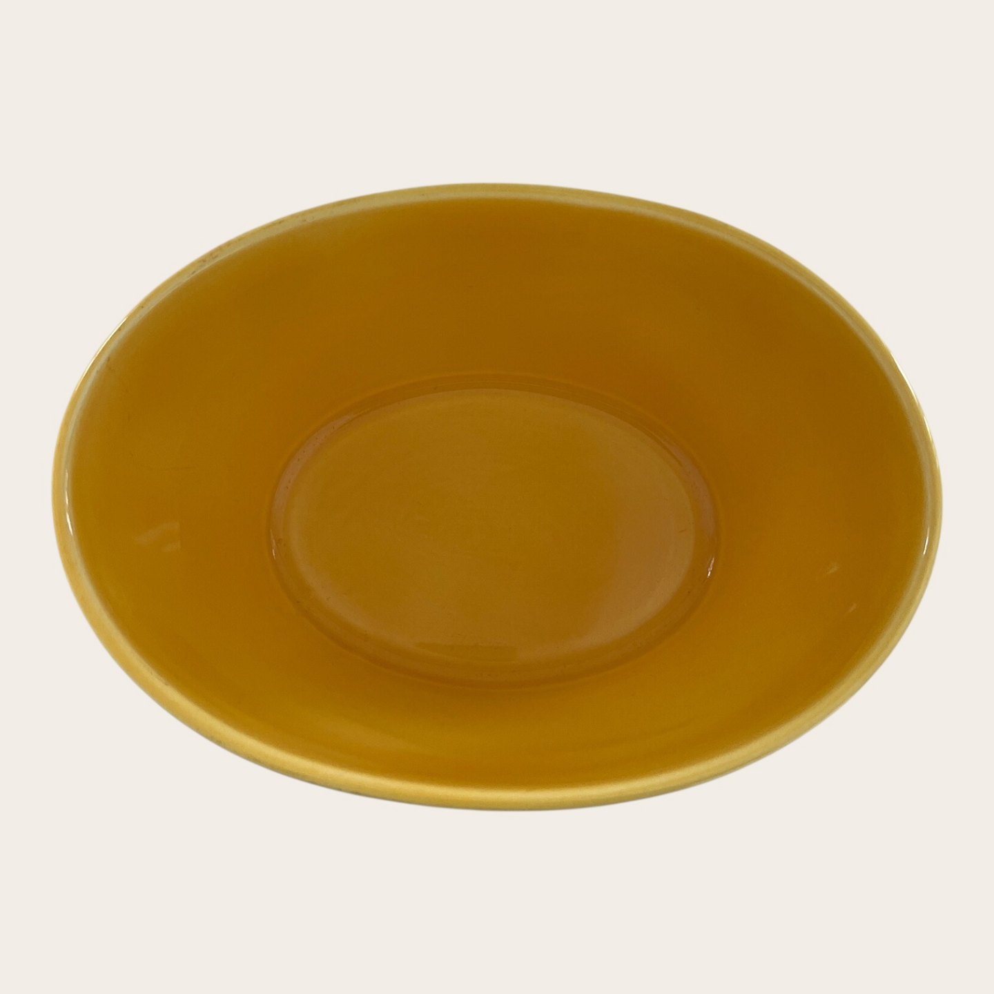 Royal Copenhagen, Aluminia, Oval bowl, Yellow #576, 21cm long, 15cm wide, 11cm high, Design Ursula Munch Petersen *Good condition*