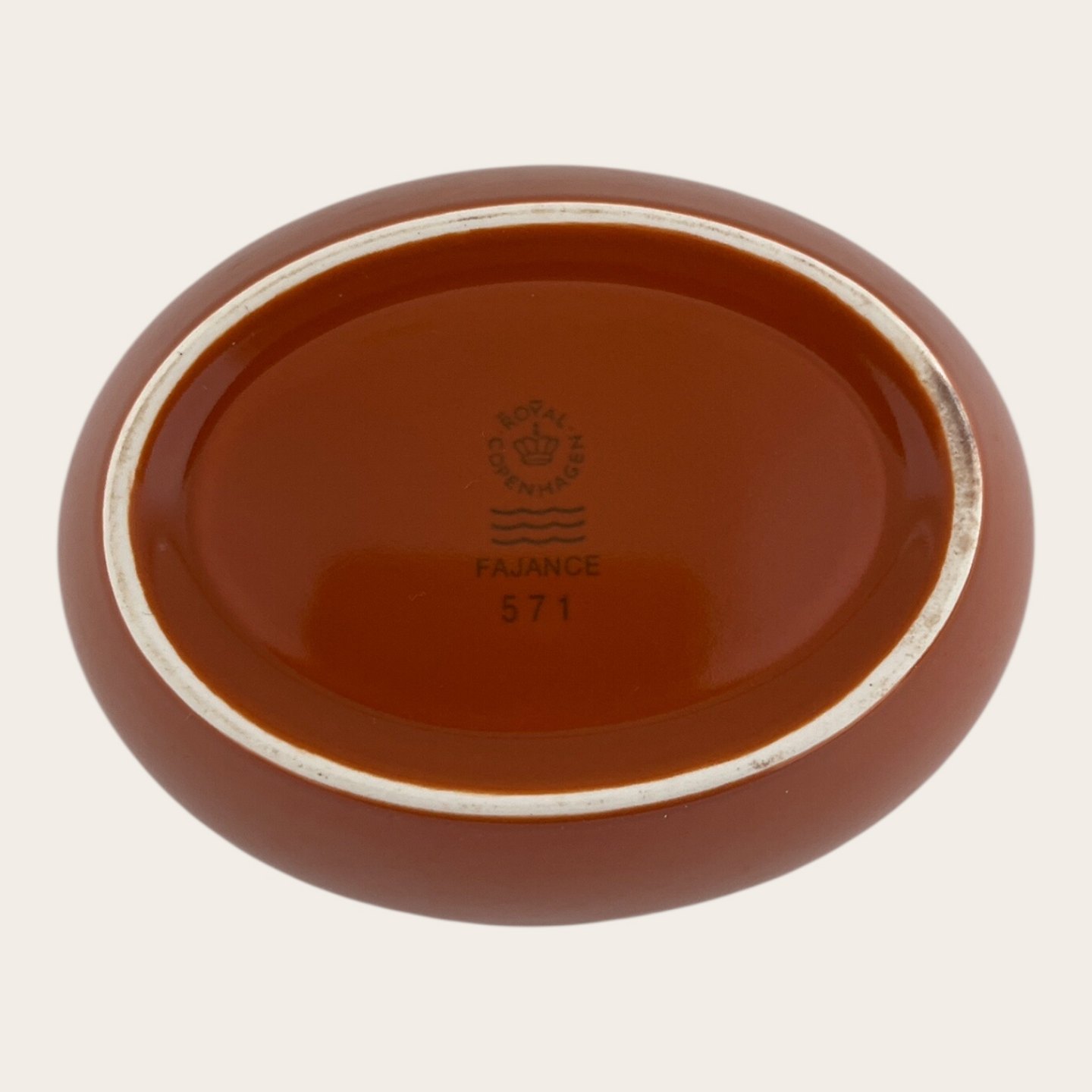 Royal Copenhagen, Aluminia, Ursula, Oval bowl, Brown #571, 10.5cm long, 8cm wide, 6cm high, Design Ursula Munch Petersen *Good condition*