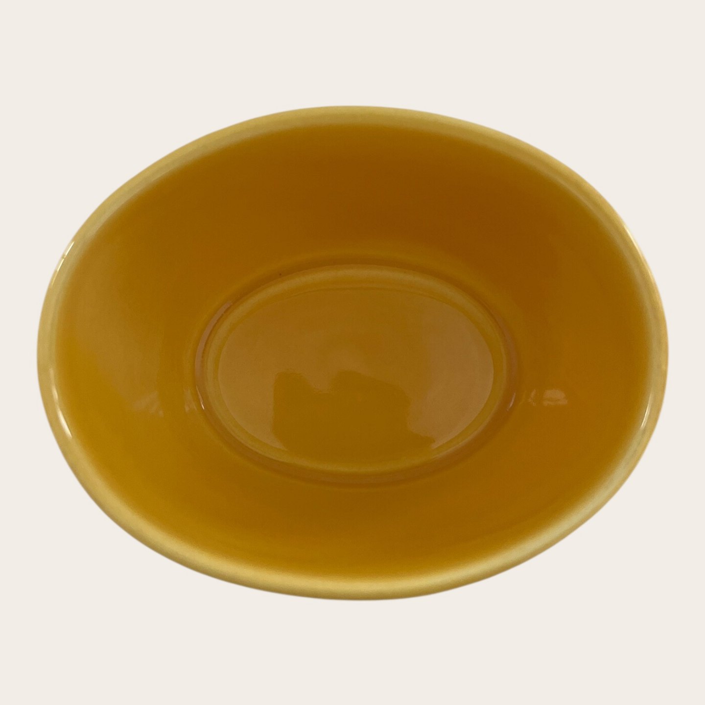 Royal Copenhagen, Aluminia, Ursula, Oval bowl #570, Yellow, 8.5cm long, 6.5cm wide, 5cm high, Design Ursula Munch Petersen, 2nd grade *Good condition*
